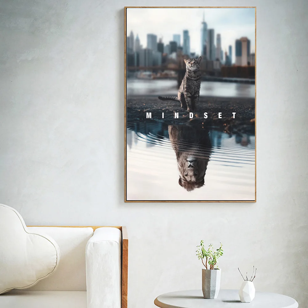 HD Печать текста животных холст картина мышление-это все мотивация кошка Лев холст картина для гостиной домашний декор