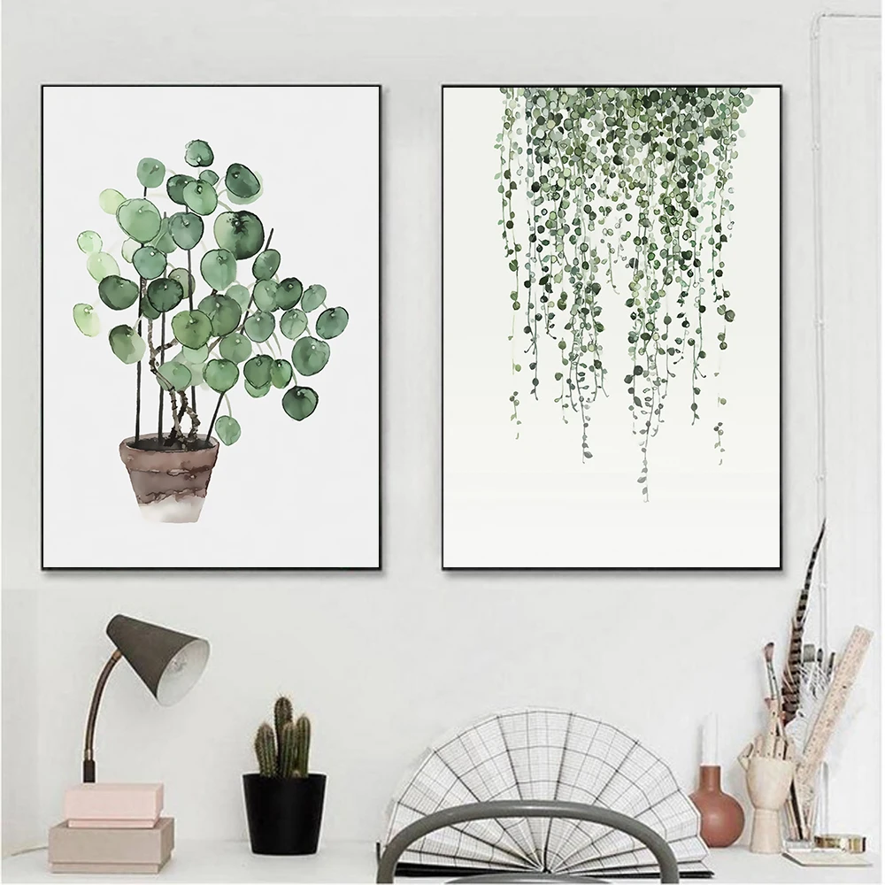 Настенная живопись с листьями, зеленый стиль, постеры и принты с растениями в скандинавском стиле, декоративная картина, Современное украшение для дома, Куадрос
