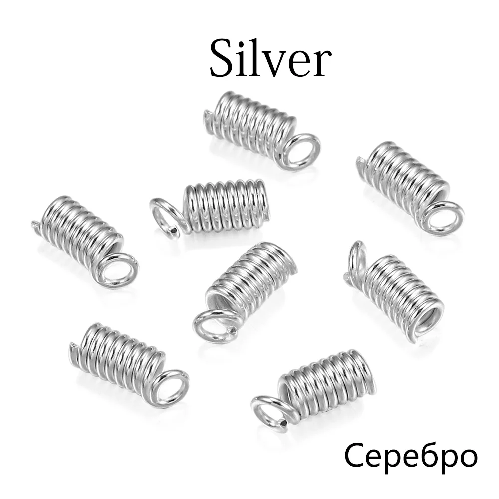 100 шт.лот металлические Пружинные зажимные застежки-застежки с кожаными концами концевые заглушки концевые разъемы для DIY браслетов ожерелий принадлежности для изготовления ювелирных изделий