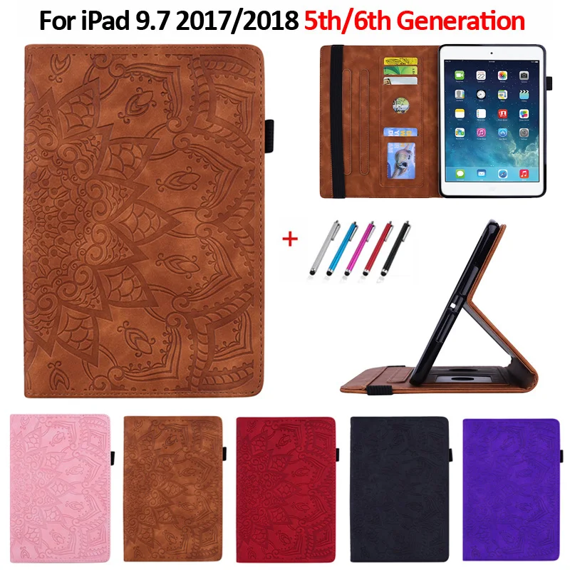Для iPad 9,7 2017 2018 чехол для планшета цветок 3D тиснение кожаный чехол для iPad 5-го 6-го поколения