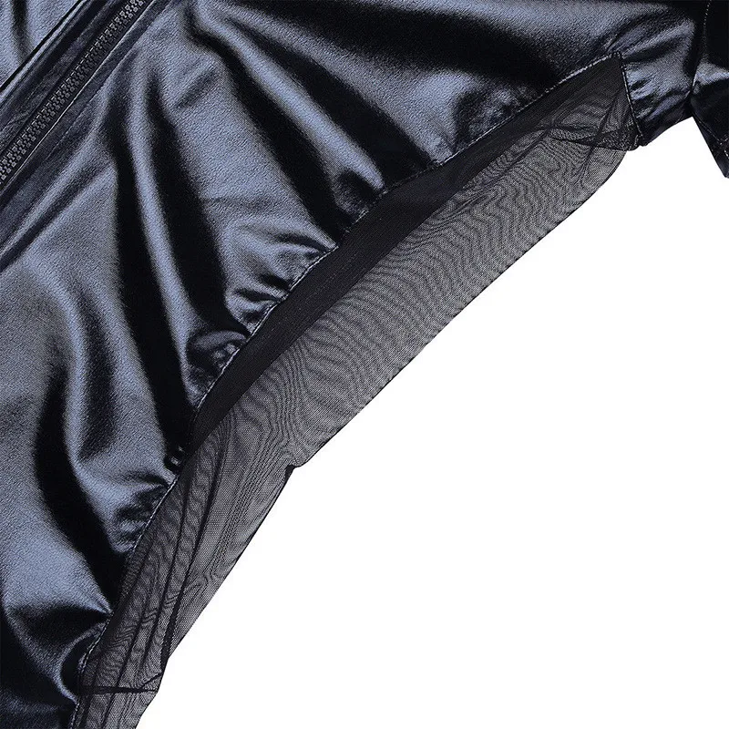 Мужской комбинезон из лакированной кожи, сексуальный боковой сетчат...