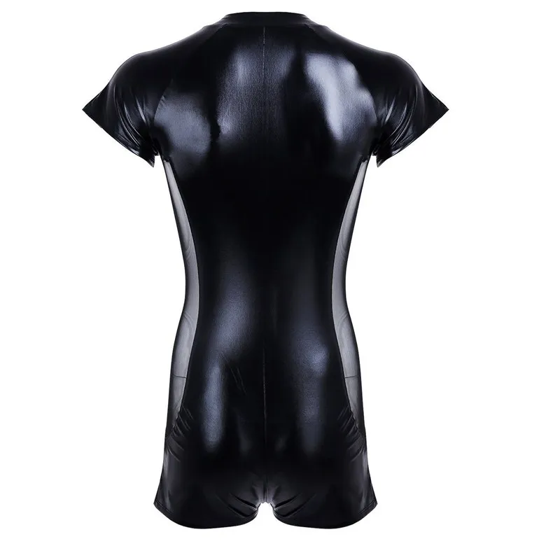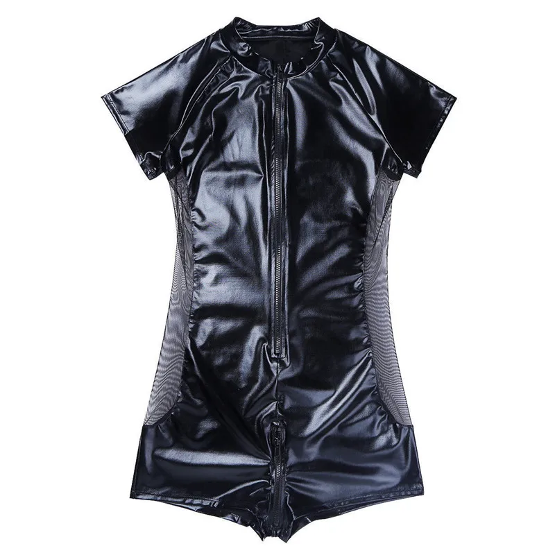 Боди мужское Сетчатое из лакированной кожи, пикантное облегающее боди на молнии, с коротким рукавом и открытой промежностью, Клубная одежда, размера плюс