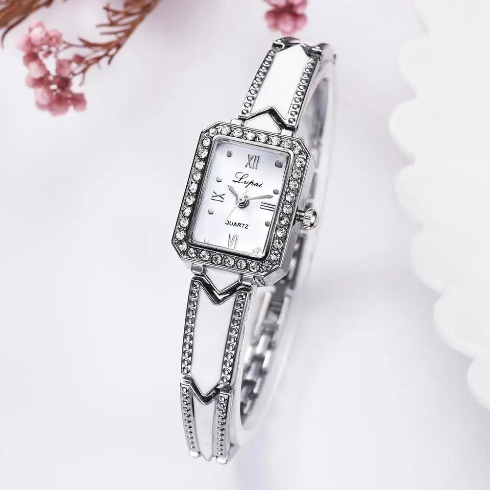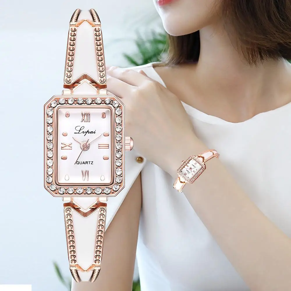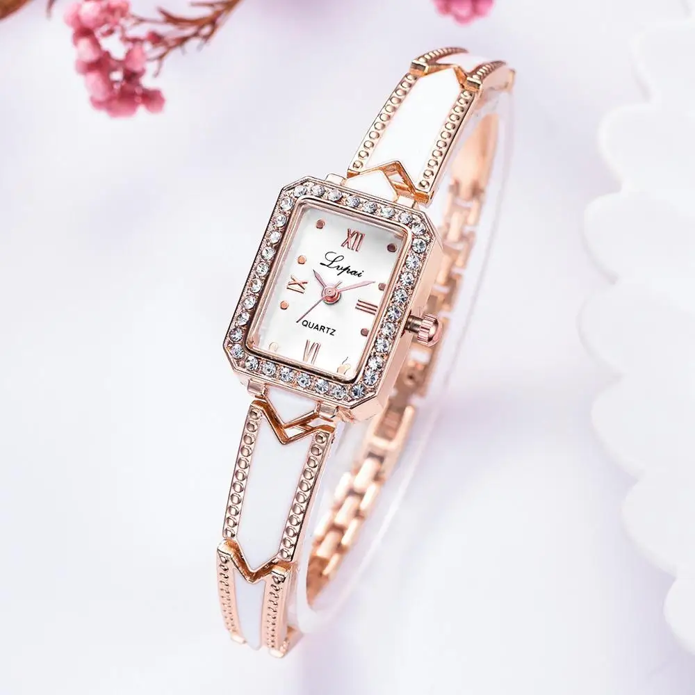 Часы женские прямоугольные кварцевые под розовое золото с браслетом