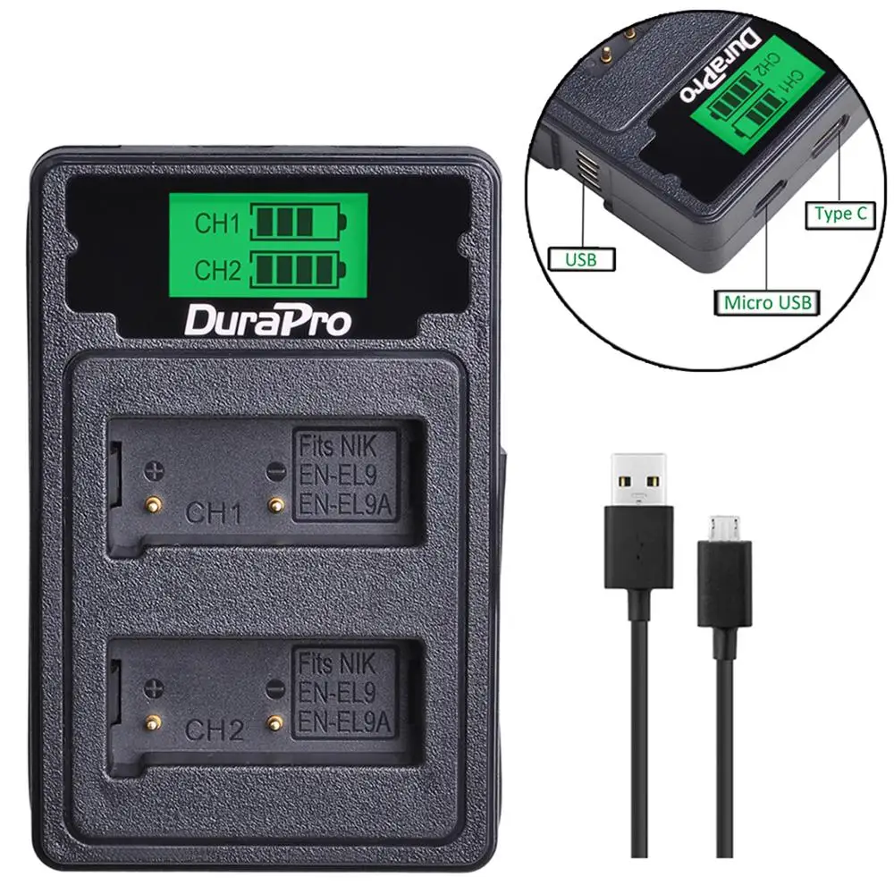 2 шт., перезаряжаемый аккумулятор EN EL9 1800 мАч, USB зарядное устройство с разъемом типа C для Nikon D40, D40X, D60, D3000, D5000