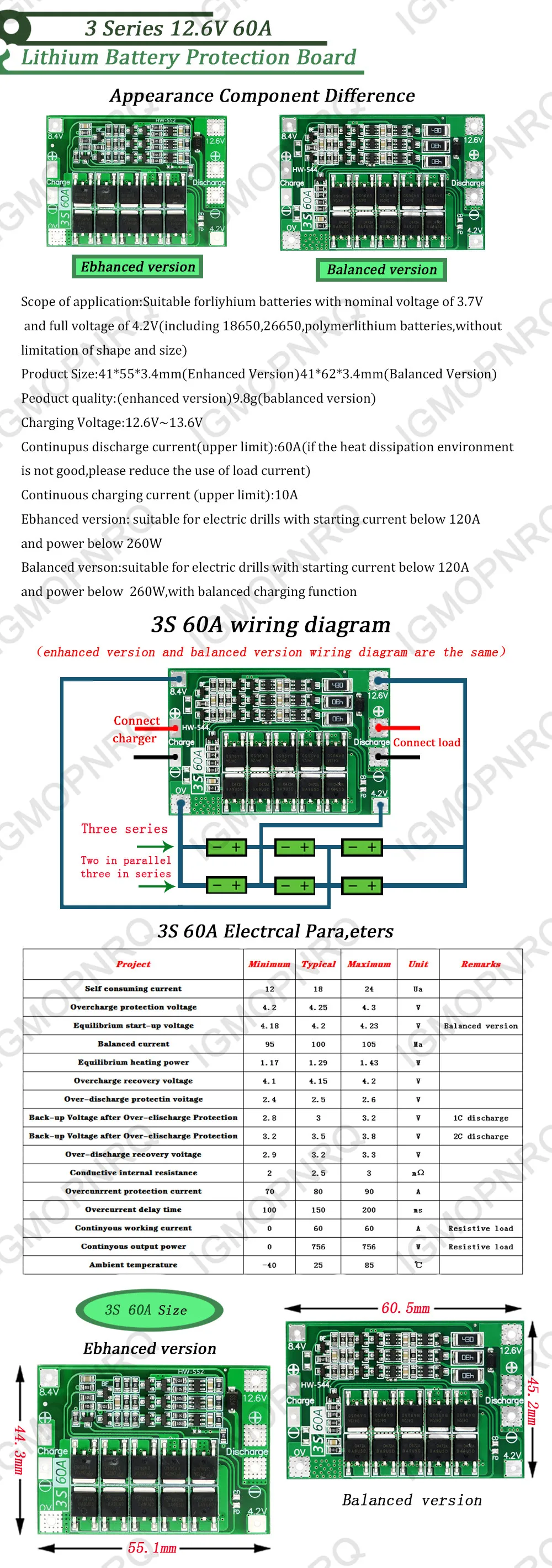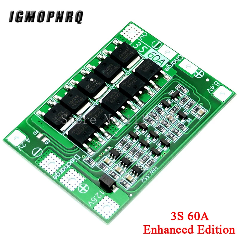 Улучшеннаясбалансированная плата 3S 60A BMSli-ion 12,6 V 18650 BMS PCM плата защиты аккумулятора для литий-ионного аккумулятора18650 зарядное устройство