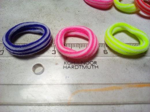 не обратила внимание на диаметр - малышки относительно нормальных резинок(моя чуть растянута). но, в целом, качественные сами по себе.