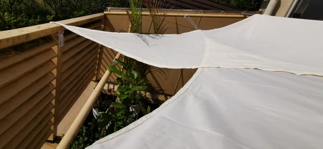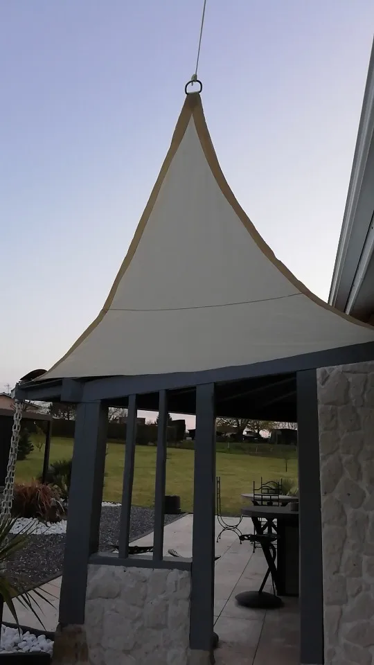 4. Очень важно правильно натянуть парусины для теней. Примечание: водонепроницаемые Паруса для теней должны быть расположены с наклоном 30 градусов, чтобы дождевая вода течила правильно и не застаивалась в парусе теней и не сломалась тент с весом.