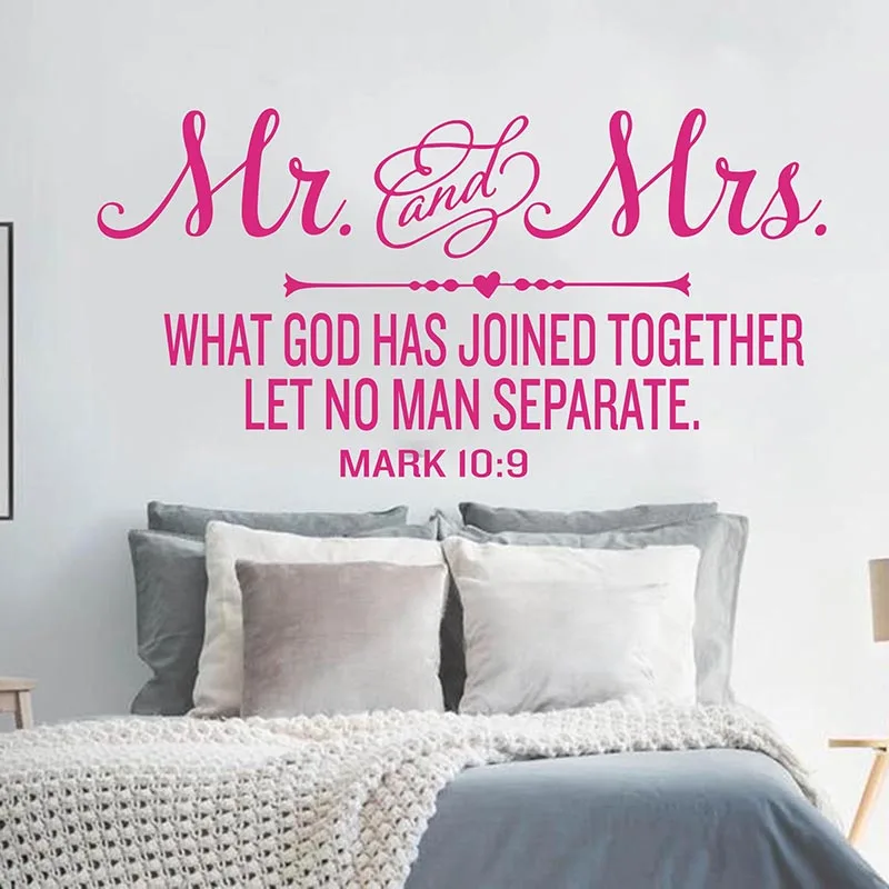 * 1 комплект Mr And Mrs What God Joined Together Mark 109 Наклейка на стену для спальни, пара свадебных стихов, цитата из Библии, наклейка на стену, виниловый Декор