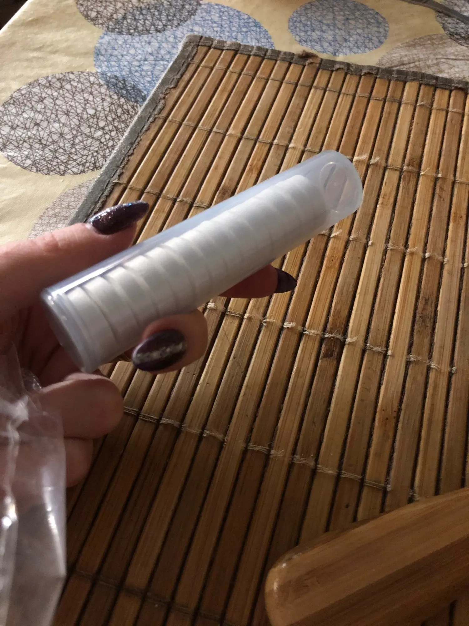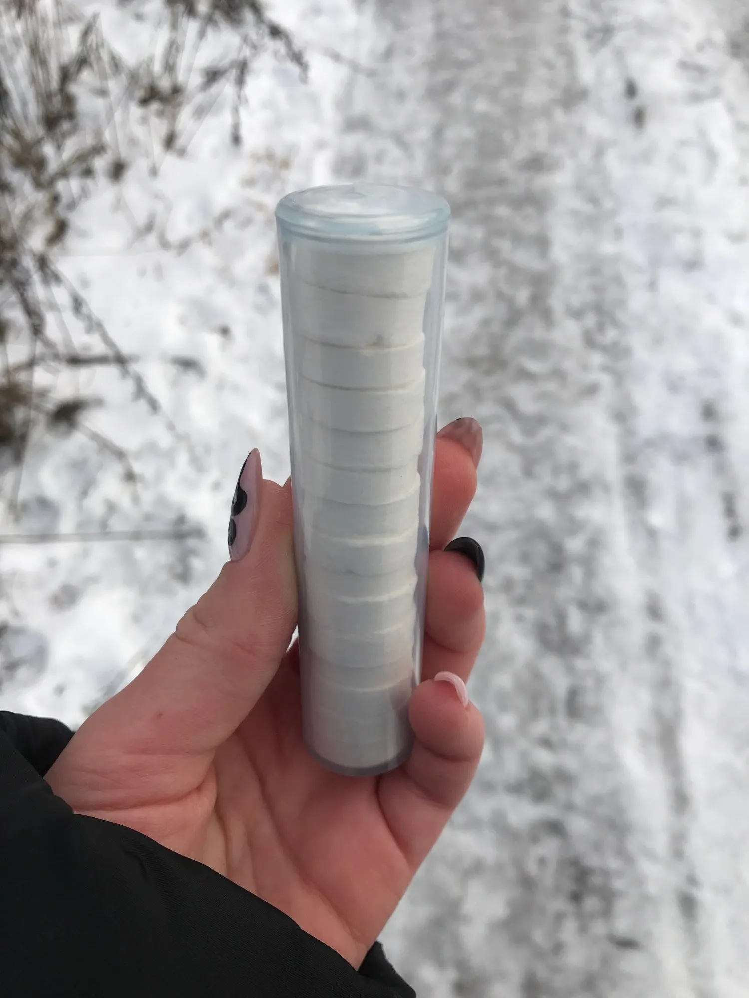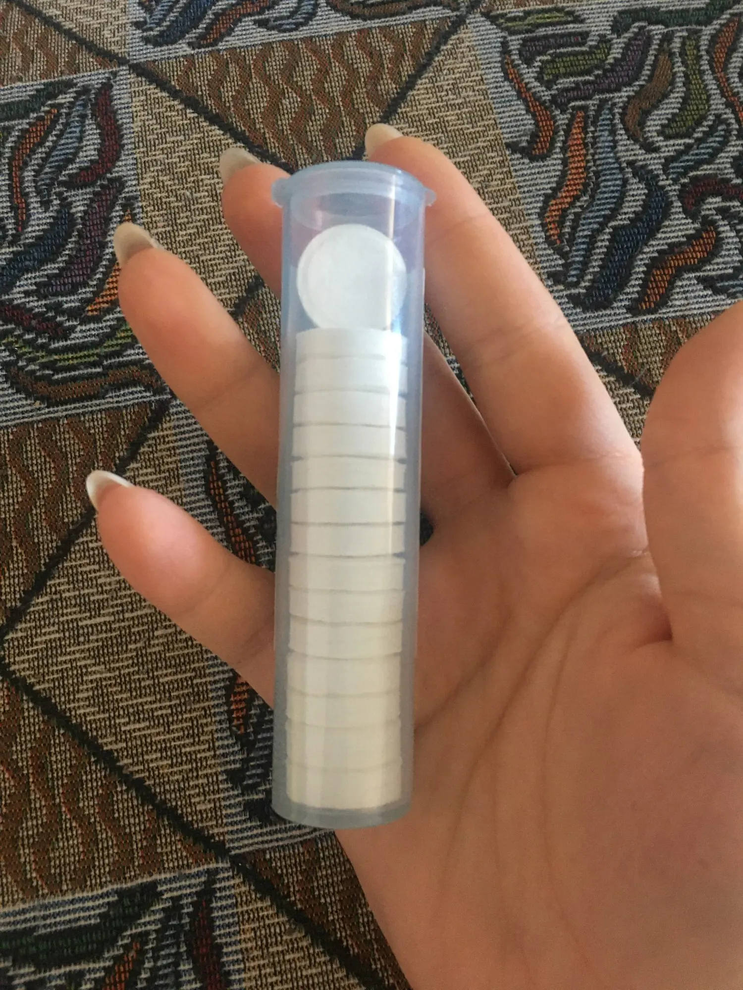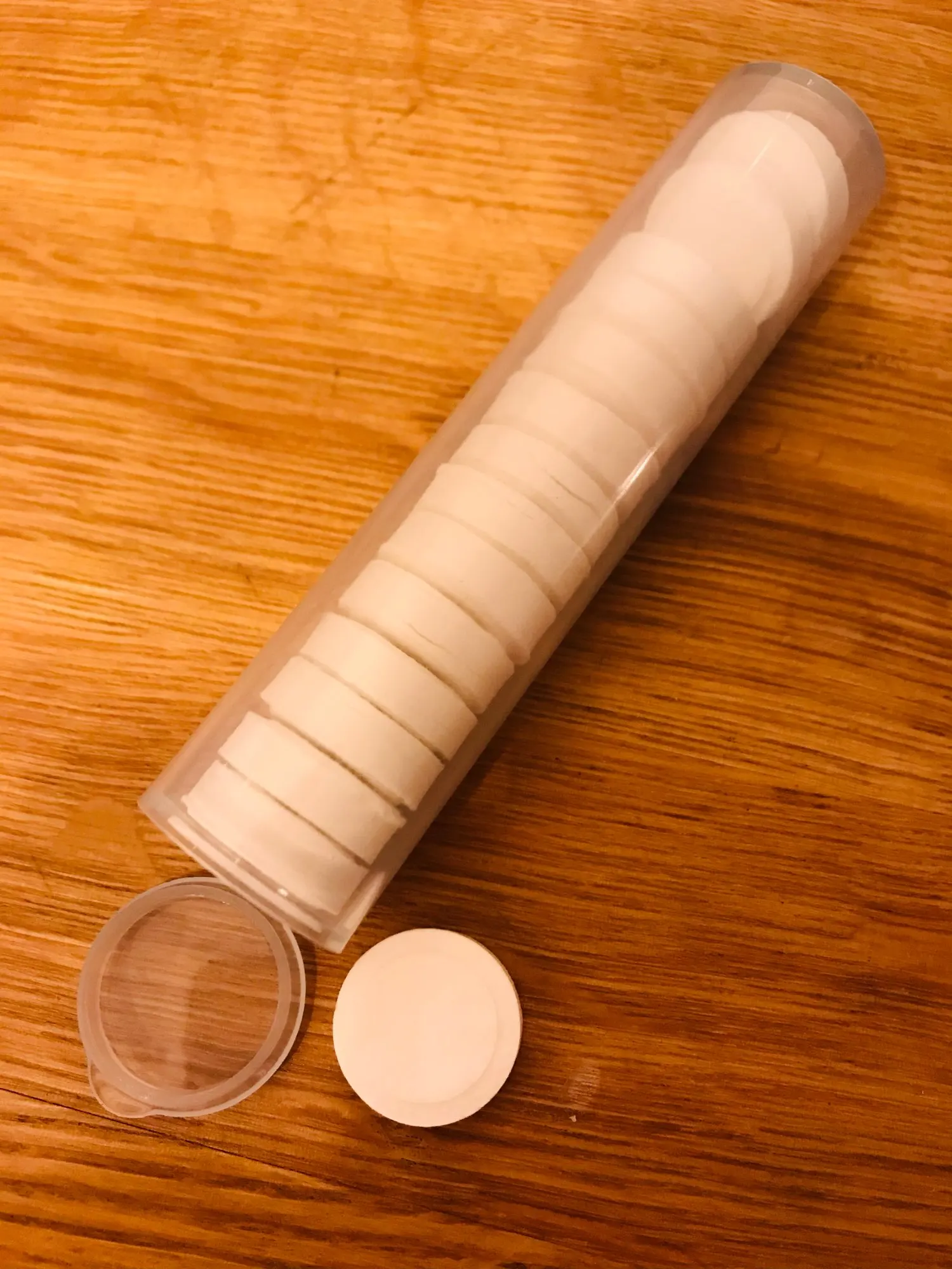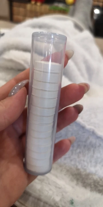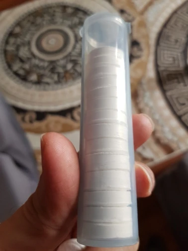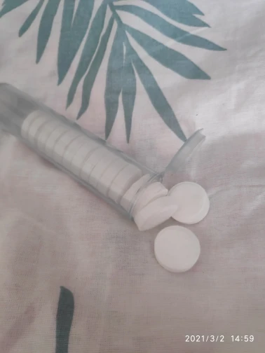 Мне это нравится, точно они описаны. Вы можете взять их в любом месте и поместить в свой кошелек. Все, что вам нужно, это как небольшое количество воды и... вуаля! Мгновенная влажная салфетка. Удобно использовать в любом месте и везде.