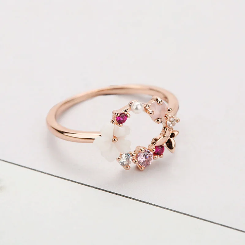 Модное очаровательное кольцо с бабочкой и цветами, креативные обруч...