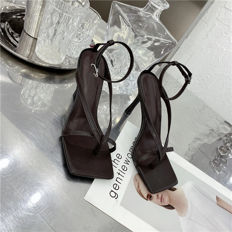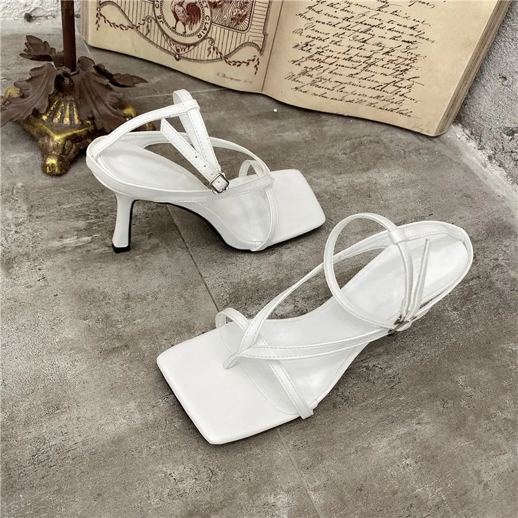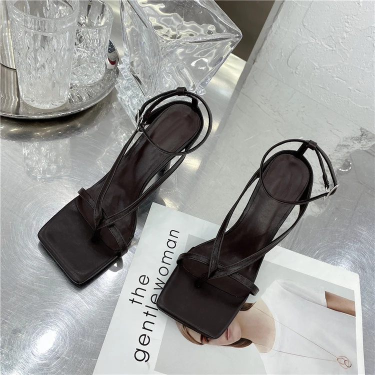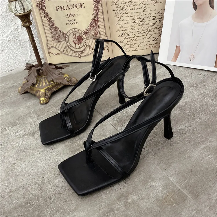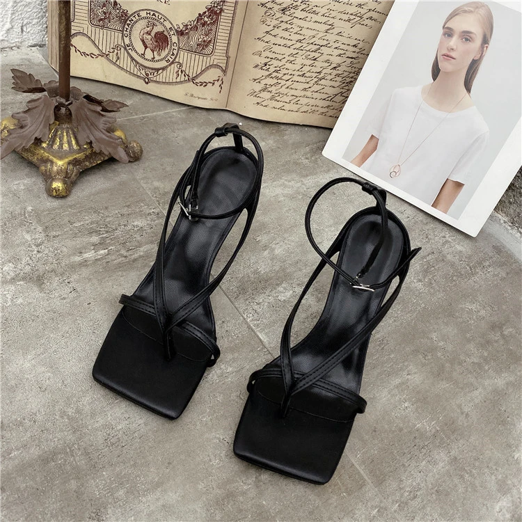 Женские модные сандалии с ремешками на лодыжках; пикантные Летние вьетнамки с квадратным носком на ремешке; женская обувь для вечеринок на высоком тонком каблуке; туфли-лодочки