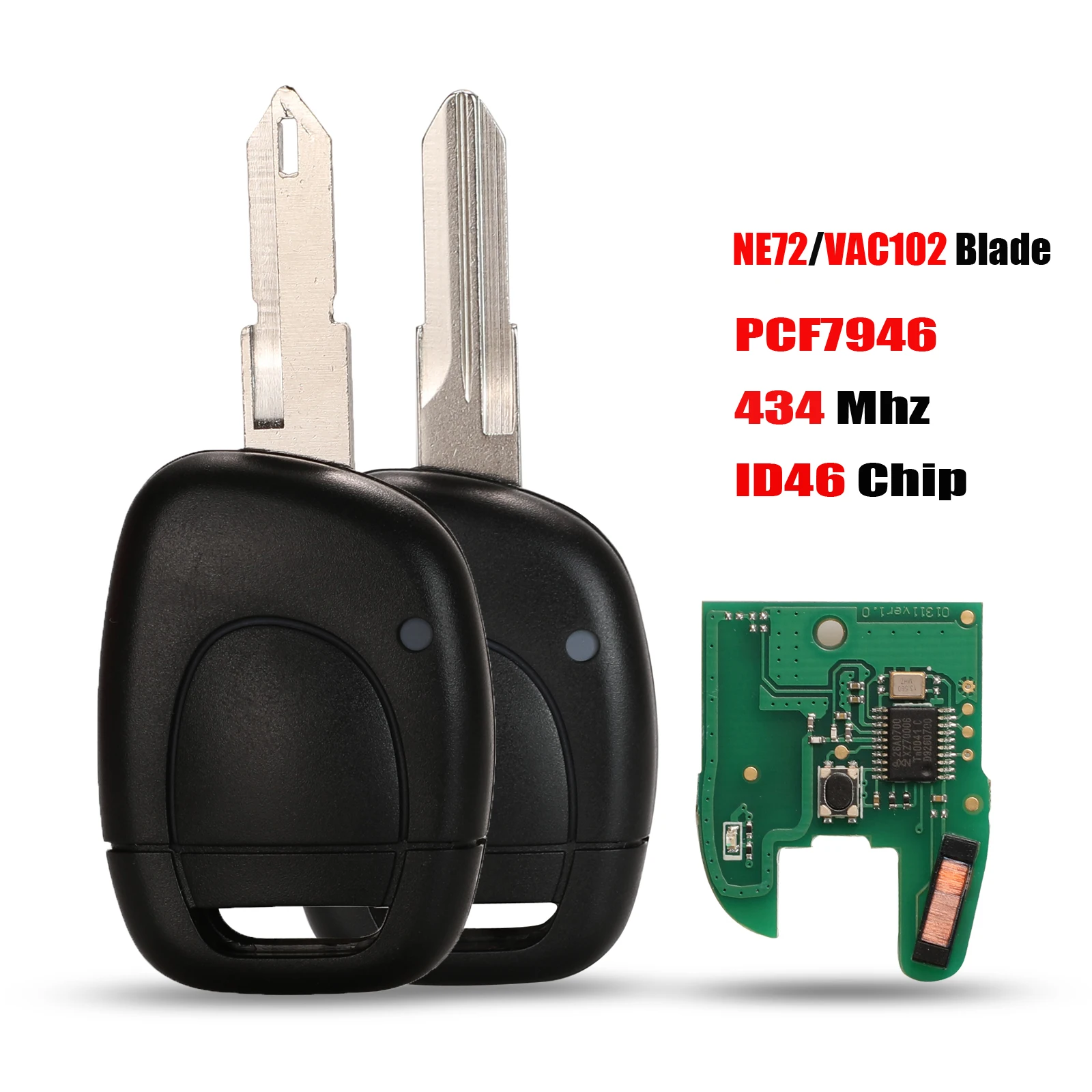 jingyuqin 1 Кнопка автомобилей дистанционного ключа управления для Renault Master Kangoo Clio Twingo VAC102 Лезвие PCF7946 ID46 Чип 433MHZ