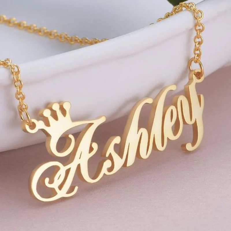 Ожерелье с именем короны на заказ, именная табличка, ожерелье для женщин, персонализированная золотая цепочка из нержавеющей стали, модные ювелирные изделия, рождественский подарок