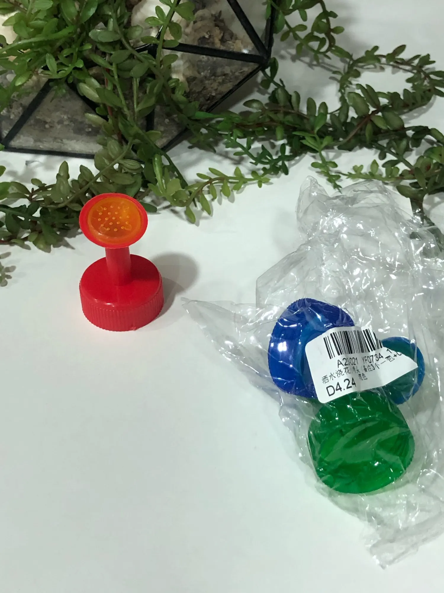 Насадки пришли за месяц в сборной посылке. Товар хороший, брака нет, накручивается на любую бутылку, через резьбу не подтекает, струйки тонкие, поливать удобно, особенно если надо промочить всю поверхность земли. Продавца рекомендую.