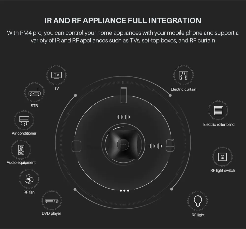 С RM4 pro, вы можете управлять вашей бытовой техникой с ваш мобильный телефон и поддержкаРазличные ИК и радиочастотные приборы, такие как телевизоры, телеприставки и радиочастотные шторы