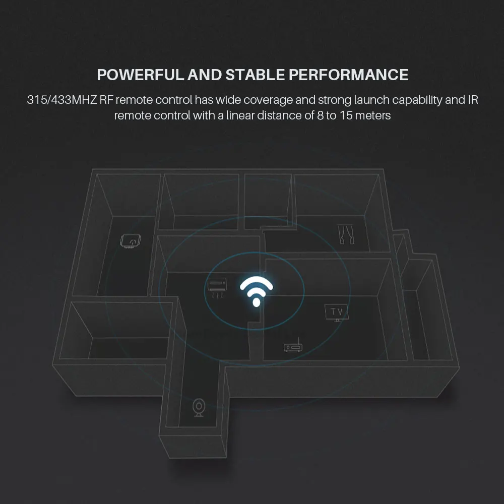 Дистанционный Радиочастотный пульт 315/433 МГц имеет широкий охват и высокую возможность запуска и ИК-пульт дистанционного управления с линейным расстоянием от 8 до 15 метров