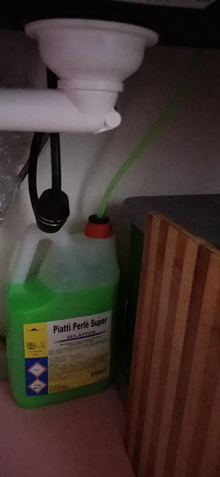 На бутылку с моющими средством не налез ни один комплектный колпачок пластиковый, только резиновый. Система работает, прицеп о к диспенсеру в мойке
