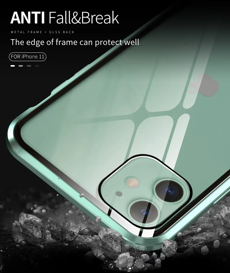 Двухсторонний стеклянный (Передний + черный) металлический магнитный чехол для iphone