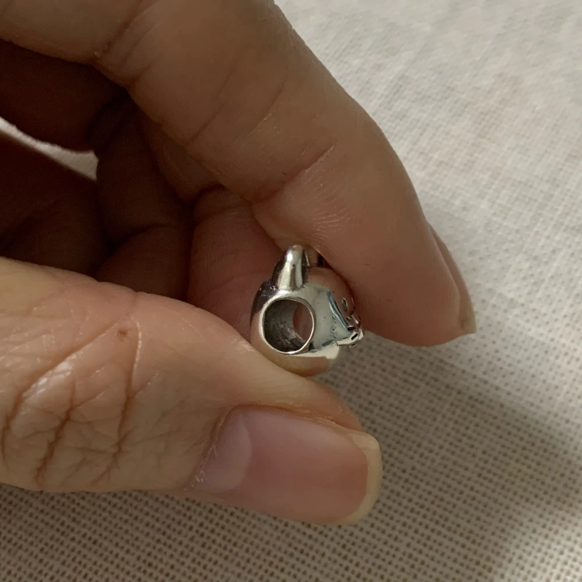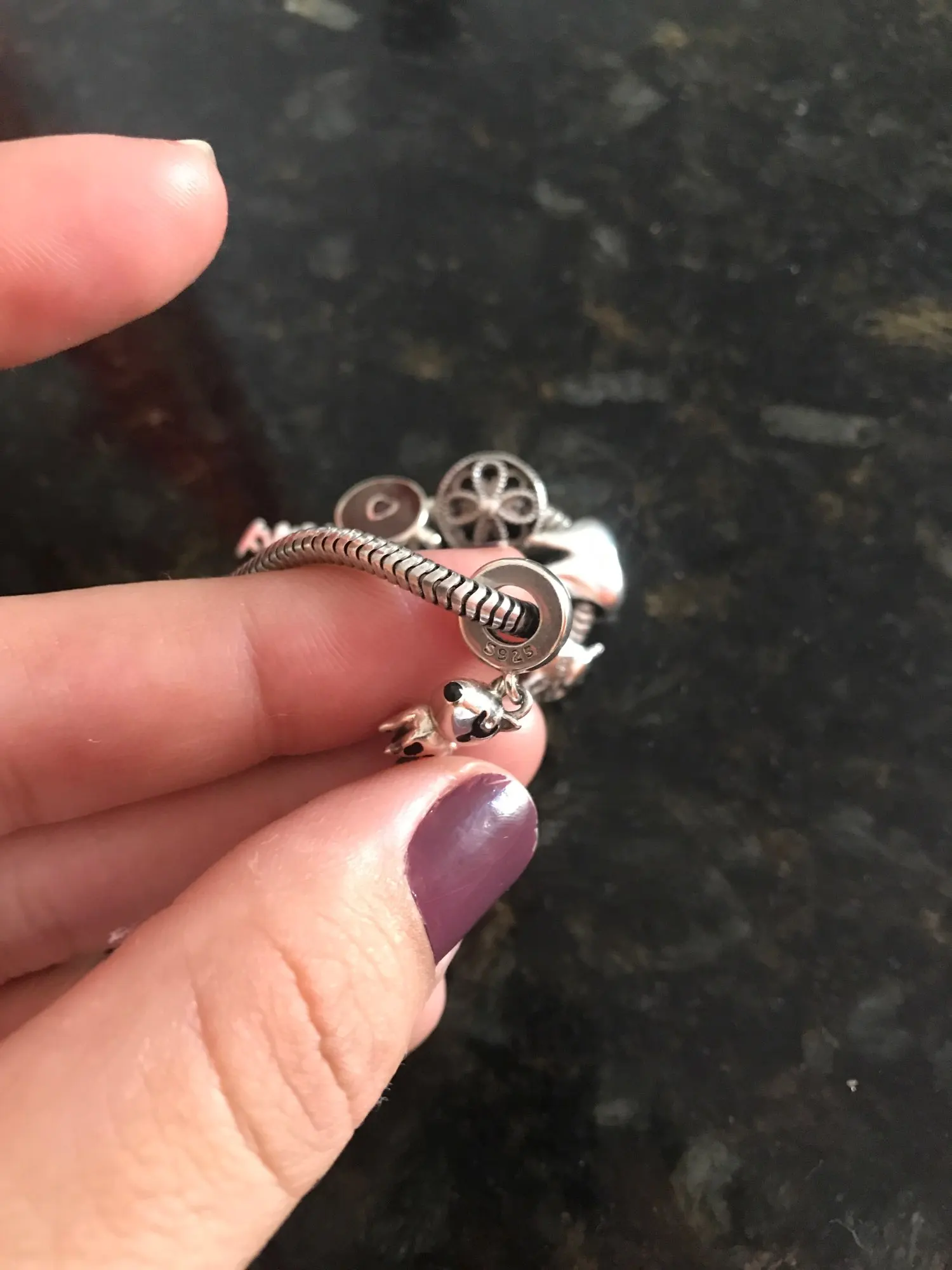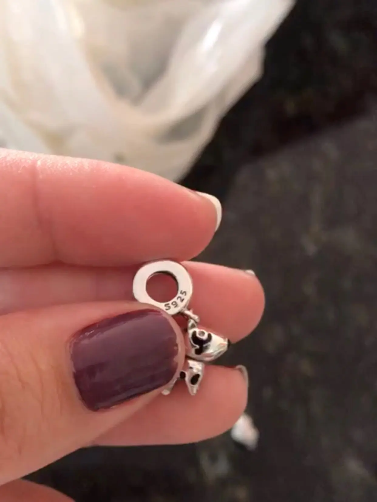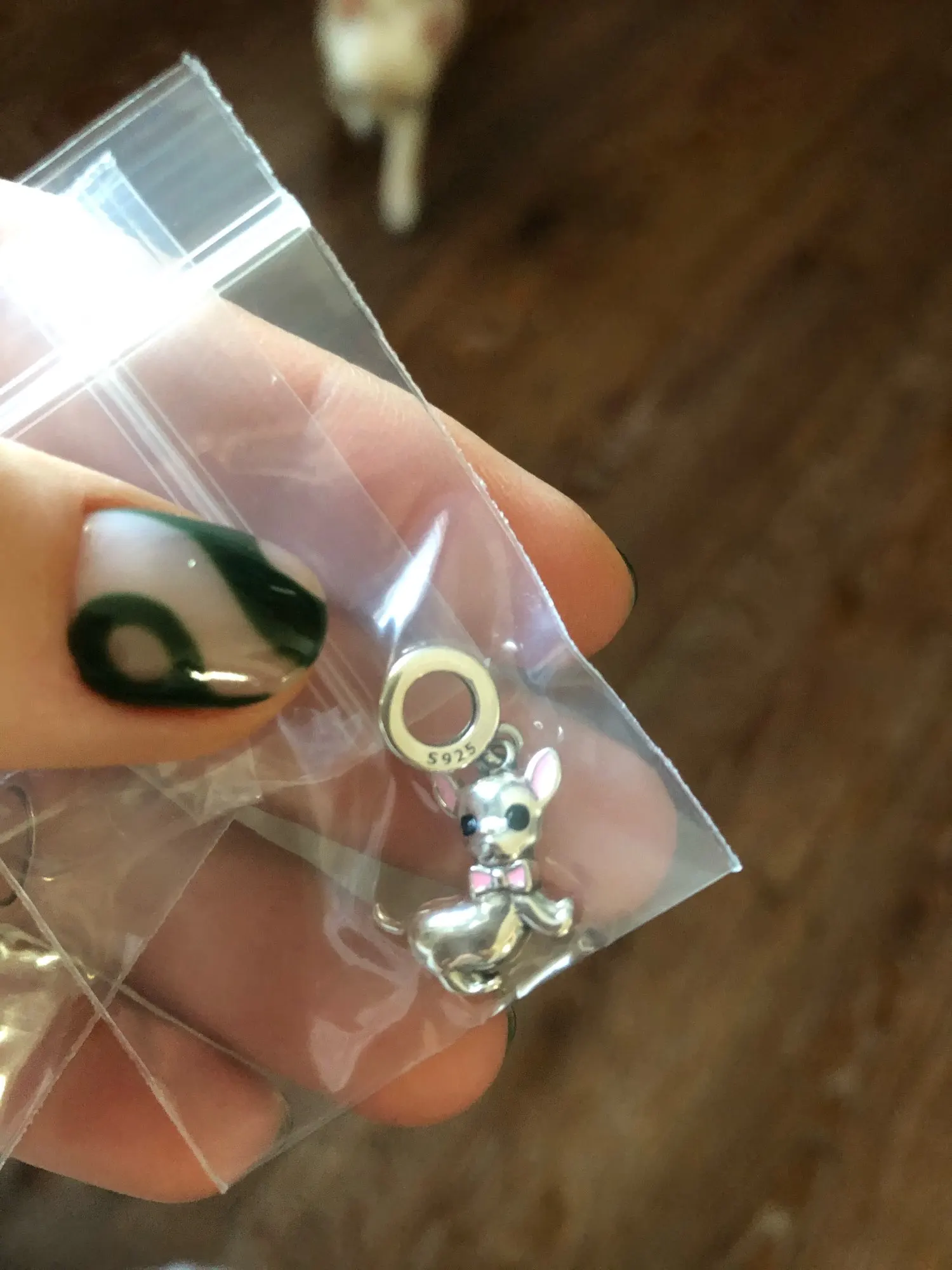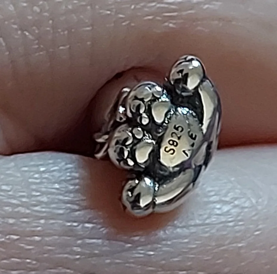 Шарм пришел быстро. Качество исполнения изделия отличное. Внешних изъянов не обнаружено. На изделии стоит маркировка s925. Отлично сидит на браслете. Покупкой очень довольна.