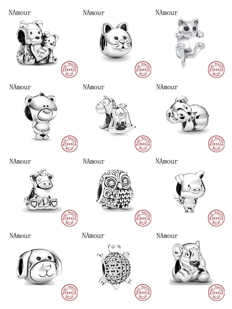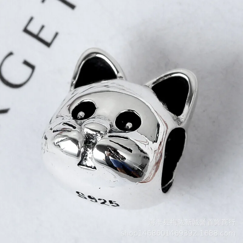 Браслет женский из серебра 925 пробы с бусинами в виде кота, собаки, единорога