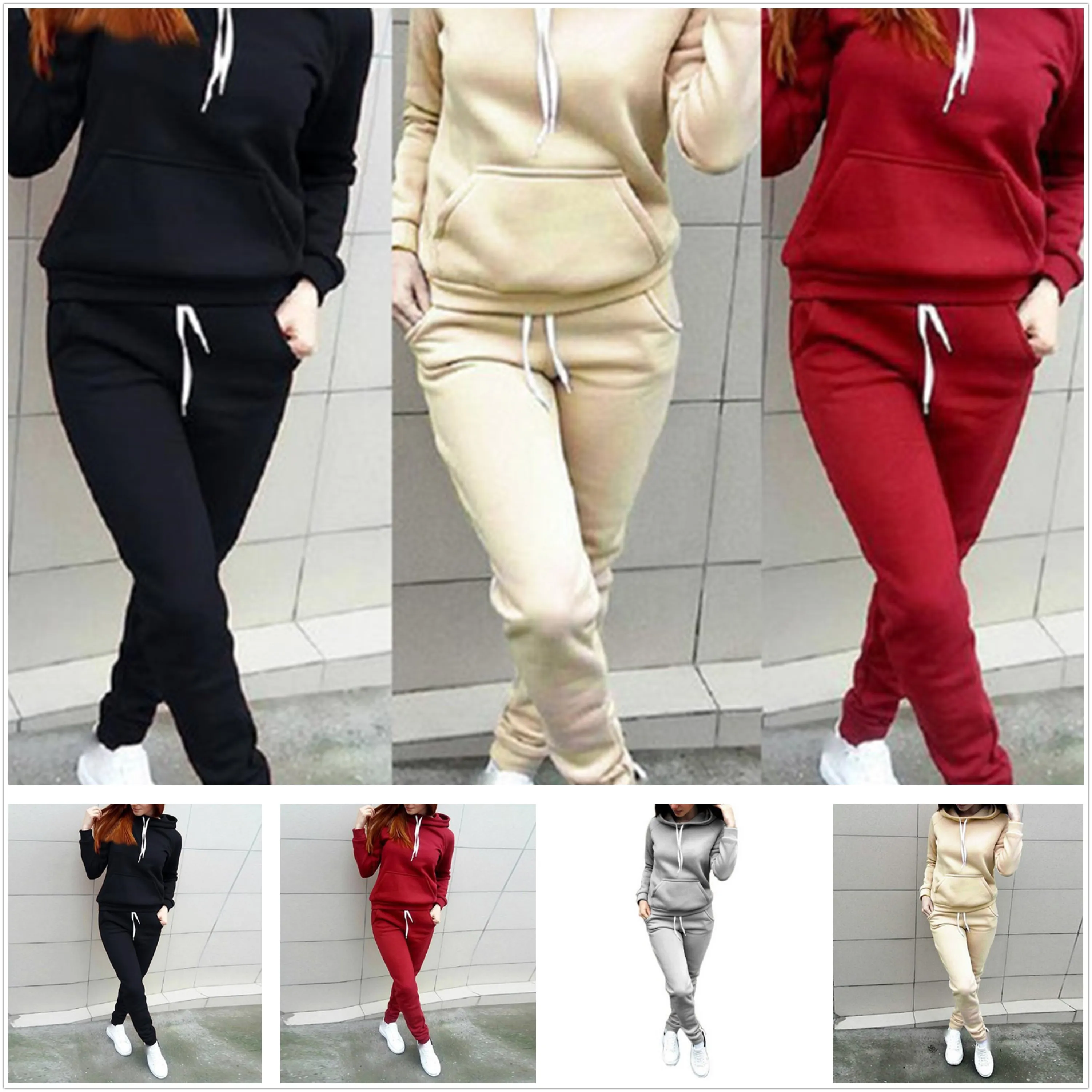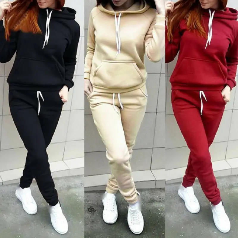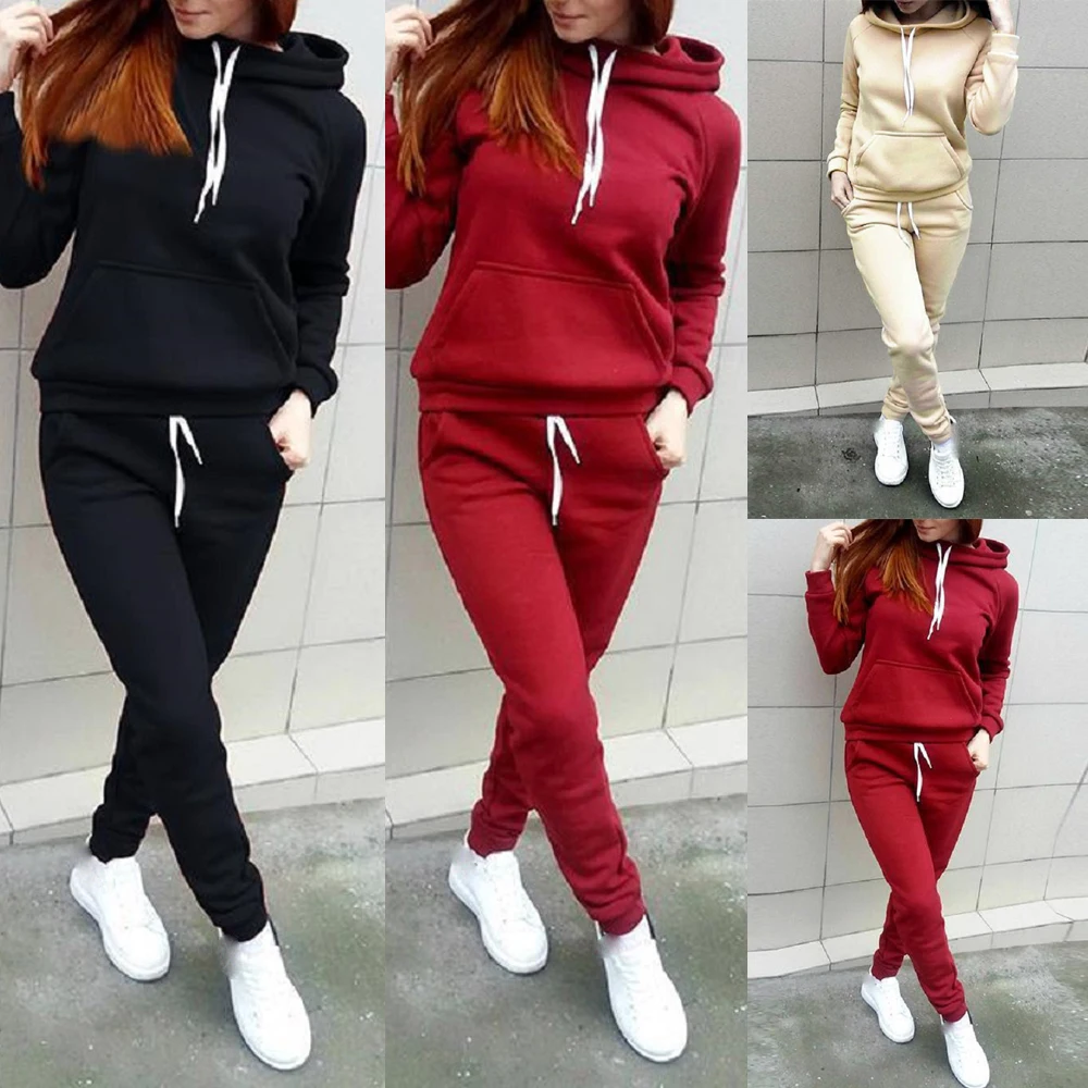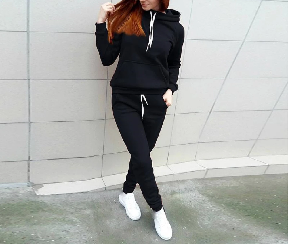 Новинка моды, 2 шт., женские худи, спортивные топы, штаны, спортивный костюм, свитшот, комплект для бега