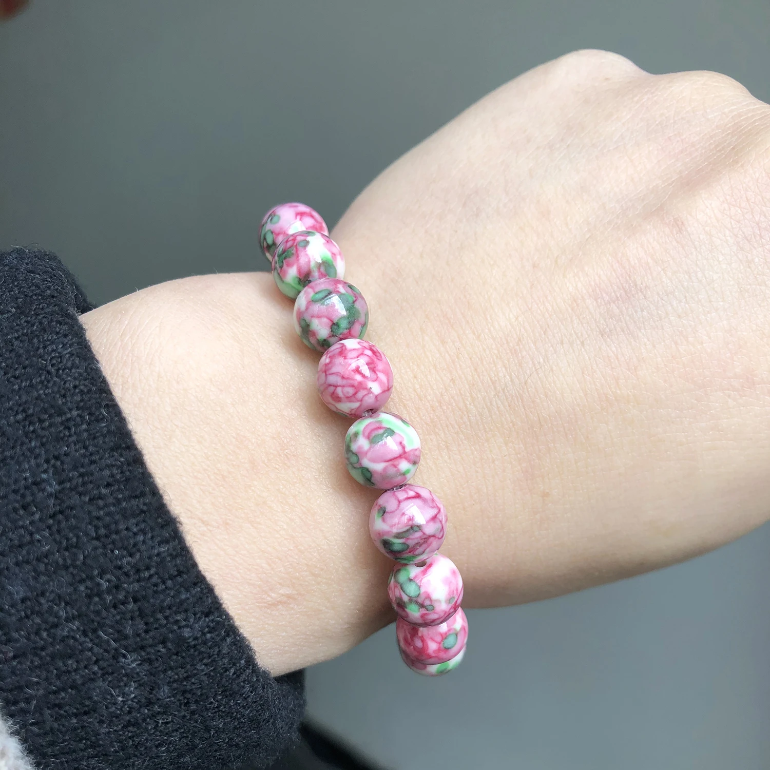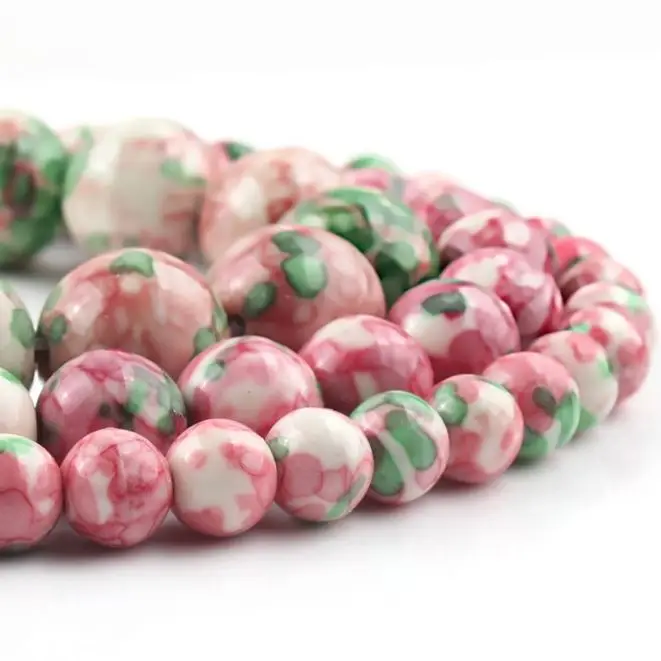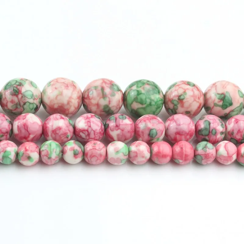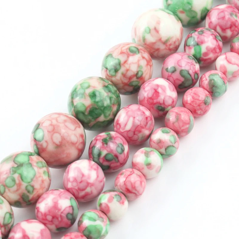 Розовый зеленый дождь цветок Jaspers Камень круглые свободные бусины для DIY ювелирных изделий браслет аксессуары 15 ''4 6 8 10 12 мм