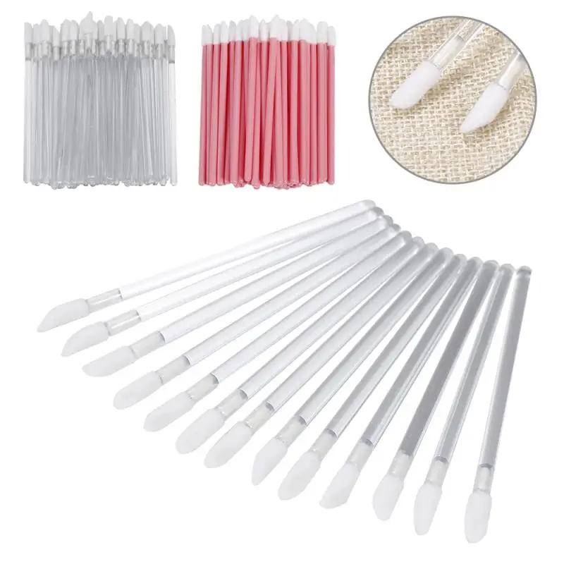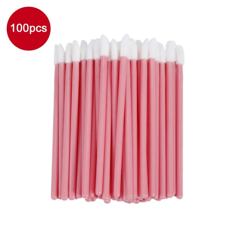 50 аппликаторов для губной помады: Флокированная волоконная головка с пластиковой ручкой;