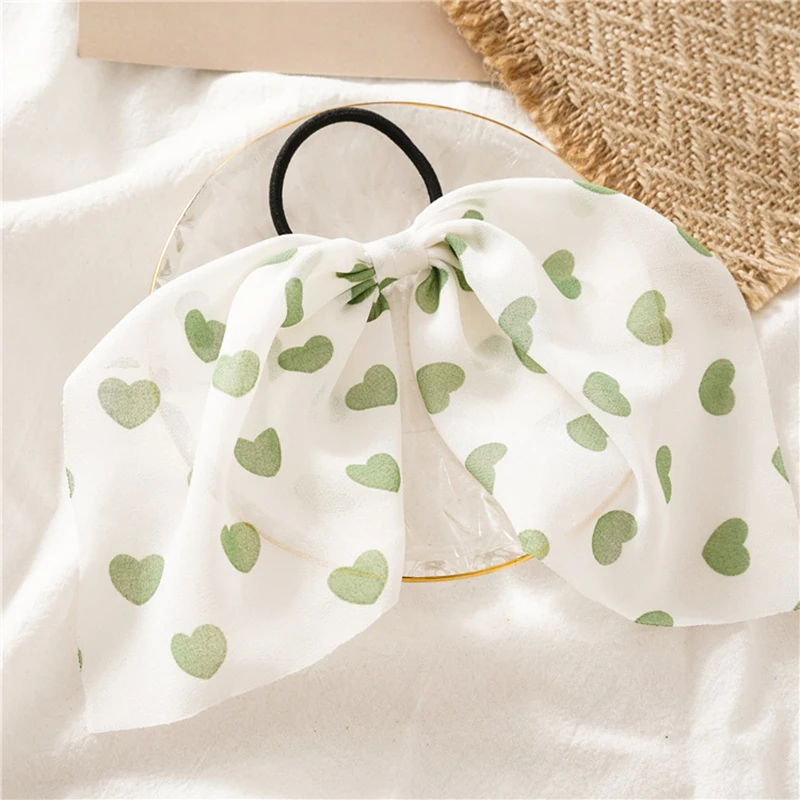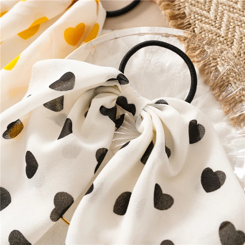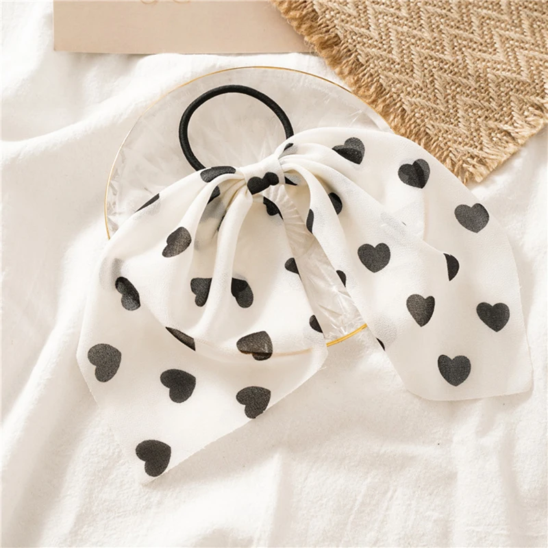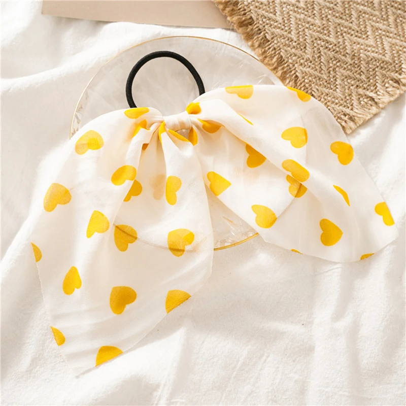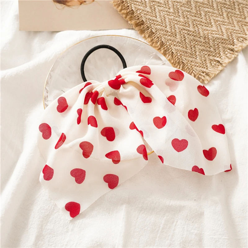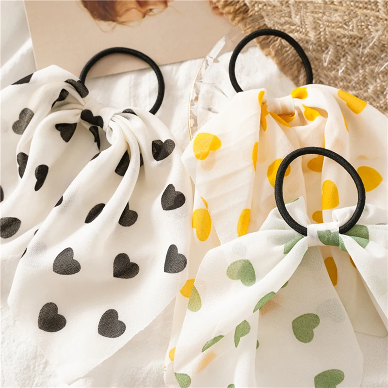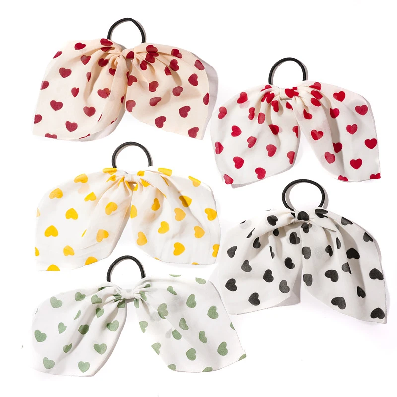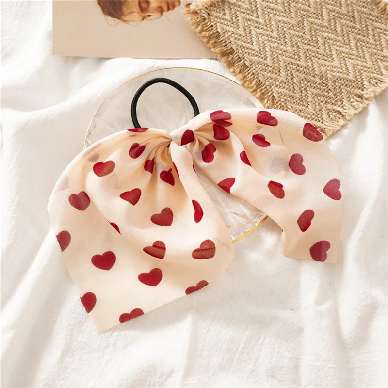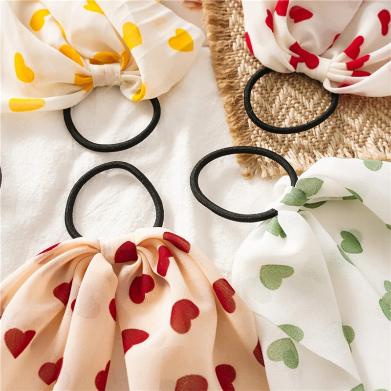 Новинка, персиковая веревка для волос в форме сердца, женские шифоновые резинки для волос с бантом, аксессуары для волос, Женская повязка на голову