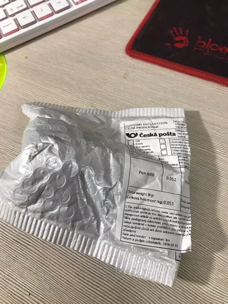 • Упаковка - пузырёк в конвертике из пупырки. • Отправка - на третьи сутки. • Отслеживание трэка - не отслеживался вообще. На конверте надписи с птичками, что пришло из Чехии. • Доставка - 76 дней в сибирь, всё цело доставлено.