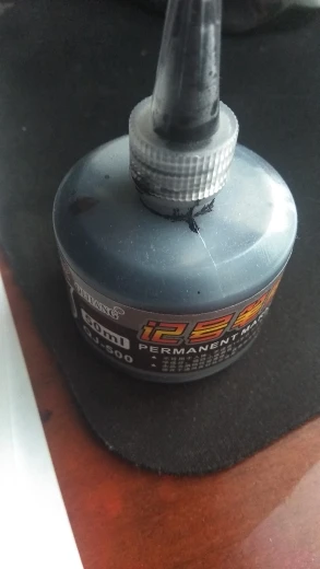 Цвет насыщенный. Сохнет мгновенно. Бензином оттирается с трудом и не полностью.