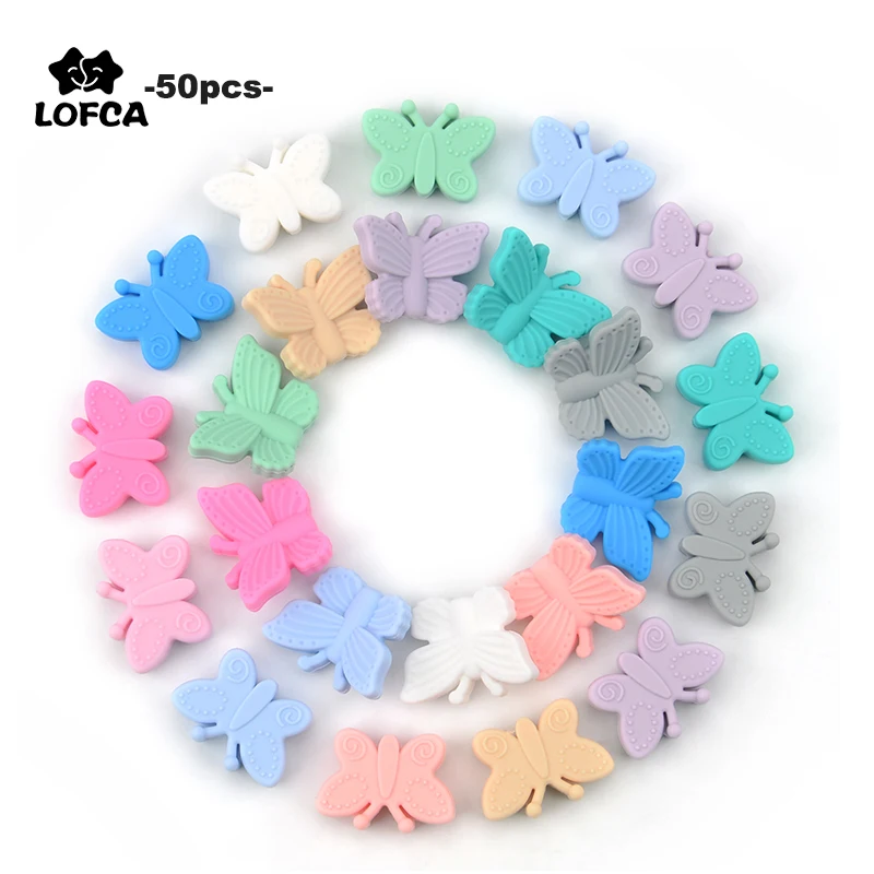 Силиконовые бусины-бабочки LOFCA, 50 шт., грызунки без бисфенола А, незакрепленные бусины сделай сам для прорезывания зубов, ожерелья, милые игрушки для прорезывания зубов в форме животных