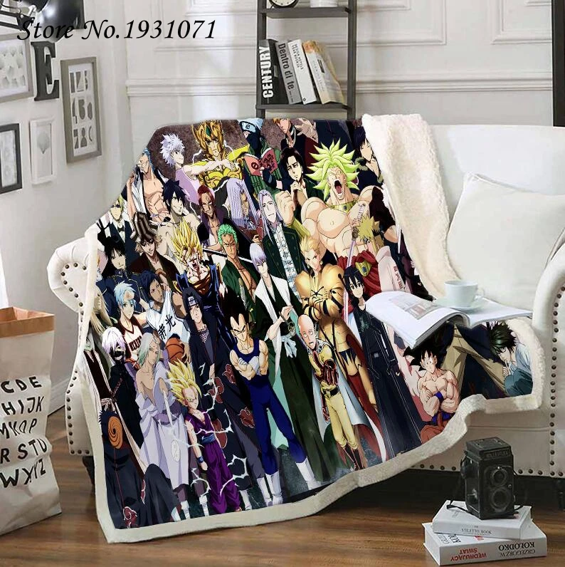 Плюшевое Флисовое одеяло с 3D принтом аниме, модные одеяла для взро...