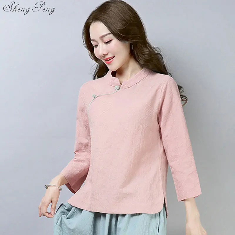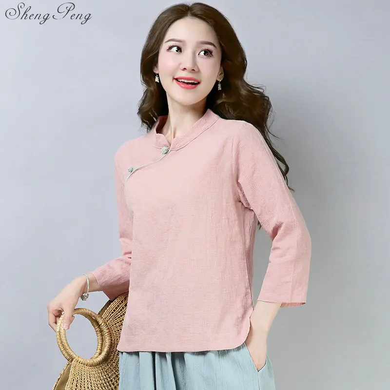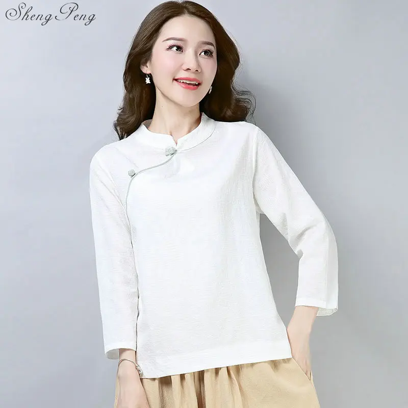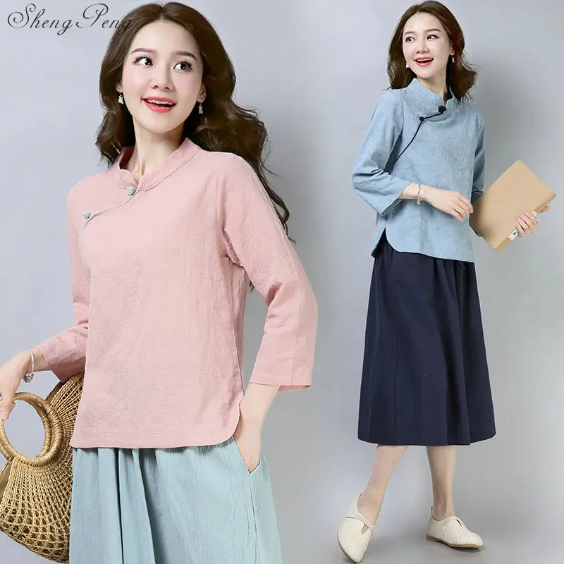 Рубашка в китайском стиле, традиционная китайская одежда для женщин, винтажный удлиненный льняной Топ hanfu V1838, 2020