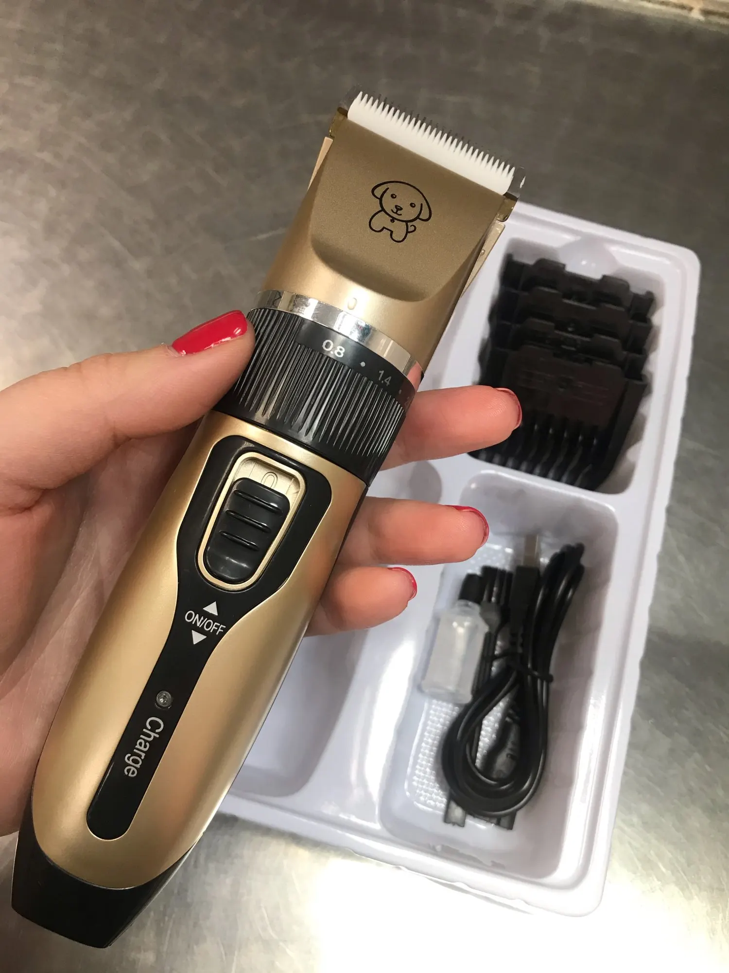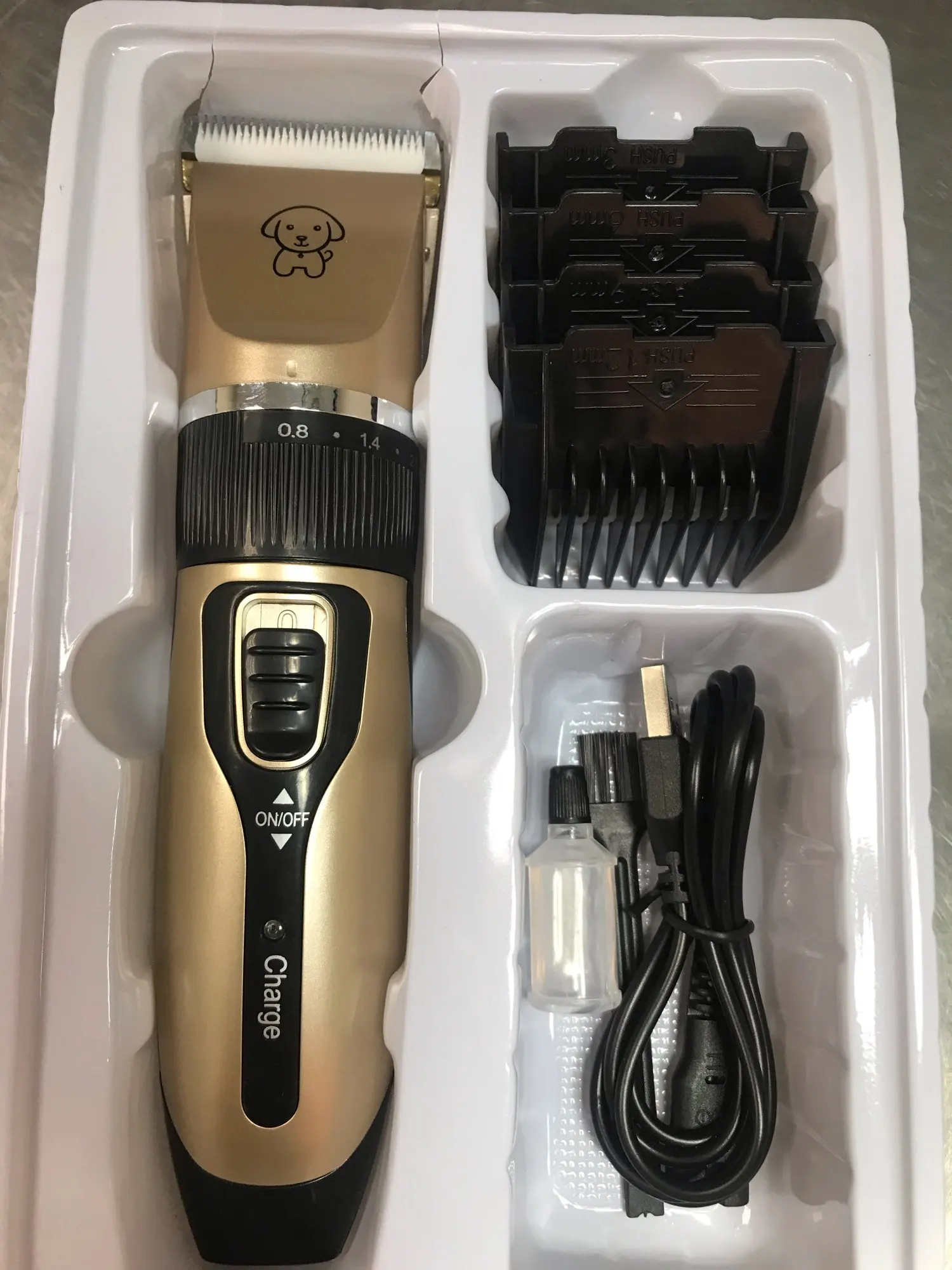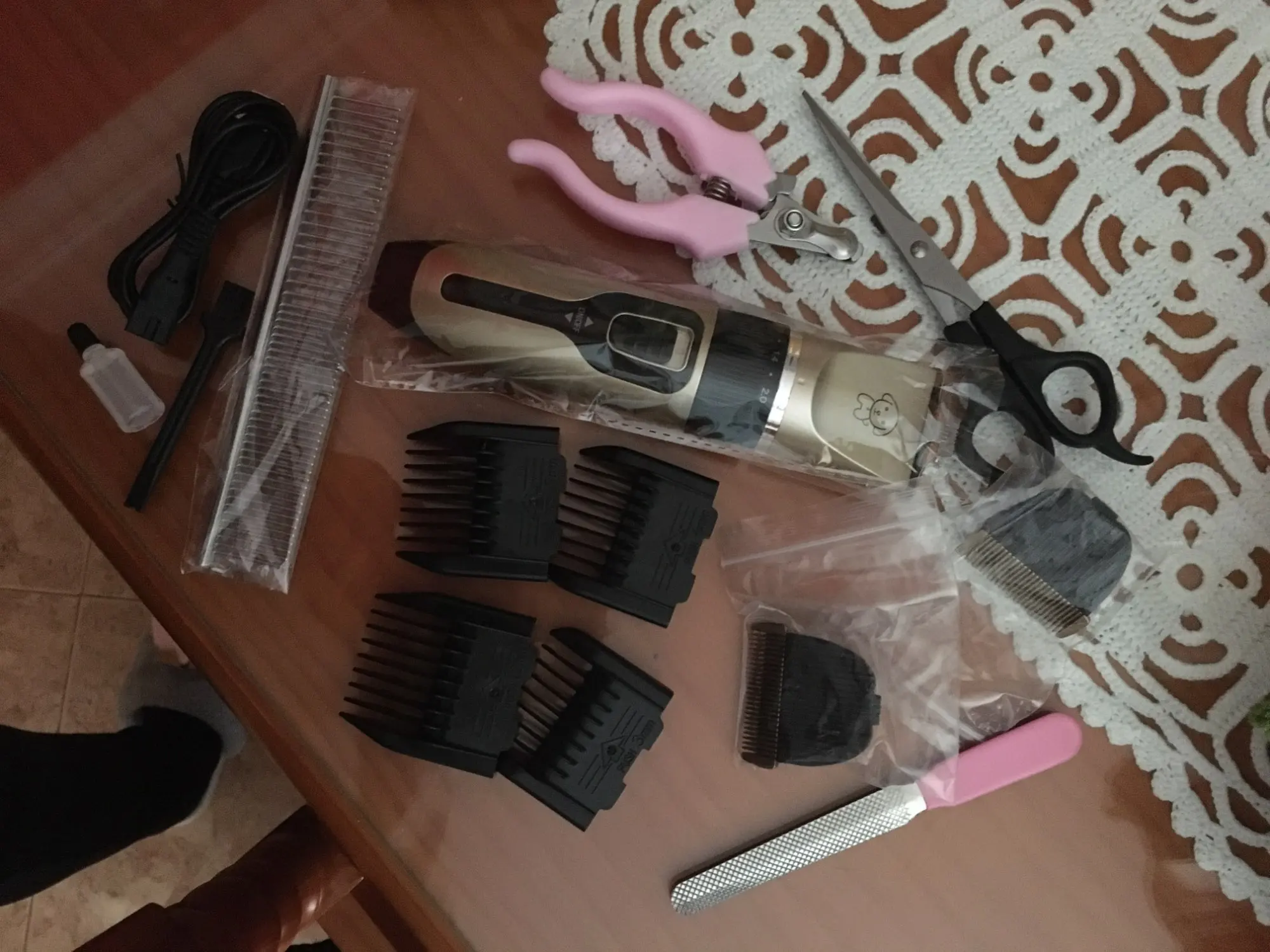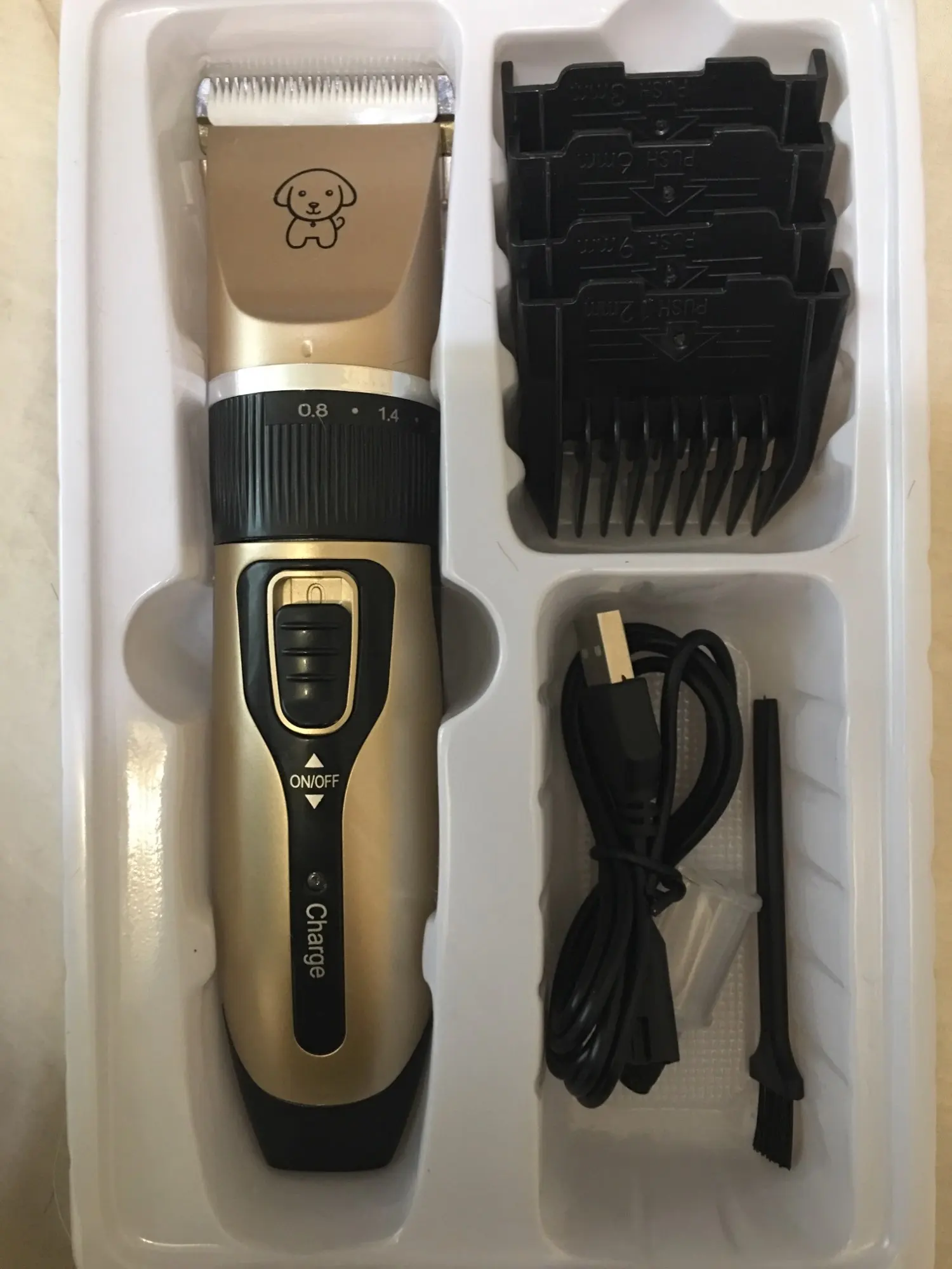 Я получил не только хороший беспроводной набор машинок для стрижки, но и расческу, кусачки для ногтей и многое другое. Все необходимое для ухода за моими домашними животными. Заряжается через USB-кабель, который входит в комплект поставки адаптера переменного тока. Хорошее время автономной работы и тихая, надежная работа.