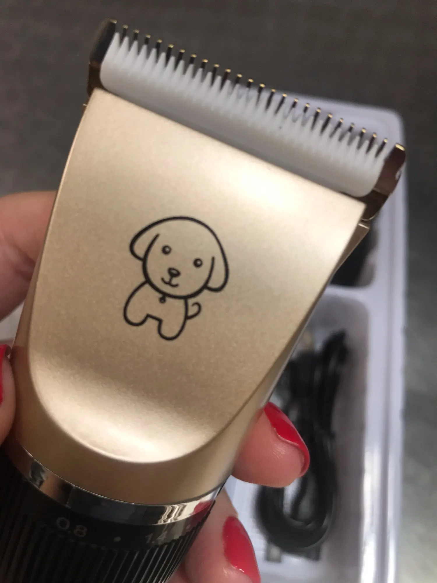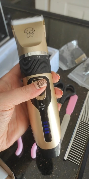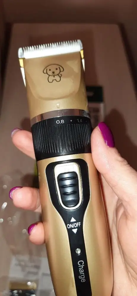 Очень довольна!! Машинка стрижёт отлично, почти бесшумная, собаки не испугались. За такую цену- это просто клад!! Стрижка моих собак мне обходилась 40€ каждые два месяца, теперь , я смогу на этом хорошо сэкономить! На фото с собакой- это мы только протестировали машинку, стричь будем потом. Рекомендую!!