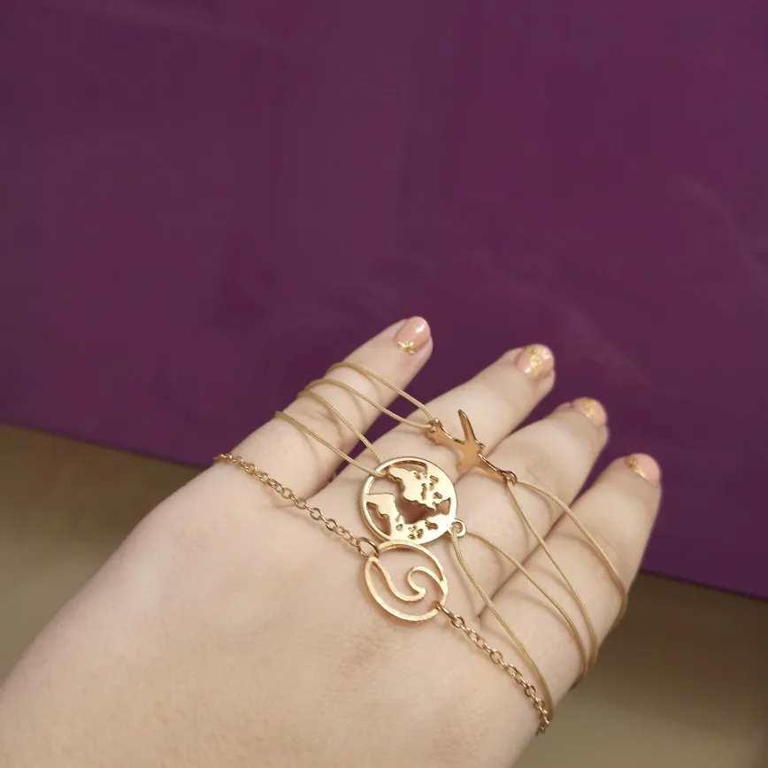 Новый богемный черный браслет-цепочка из веревки для женщин, украшения в стиле бохо с изображением самолета, Луны, сердца