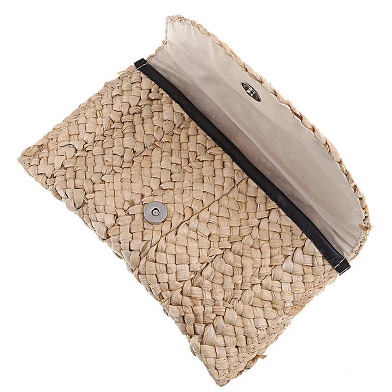 Женский соломенный вязаный клатч в стиле бохо, лето плетеная Сумочка, пляжная сумка, кошелек