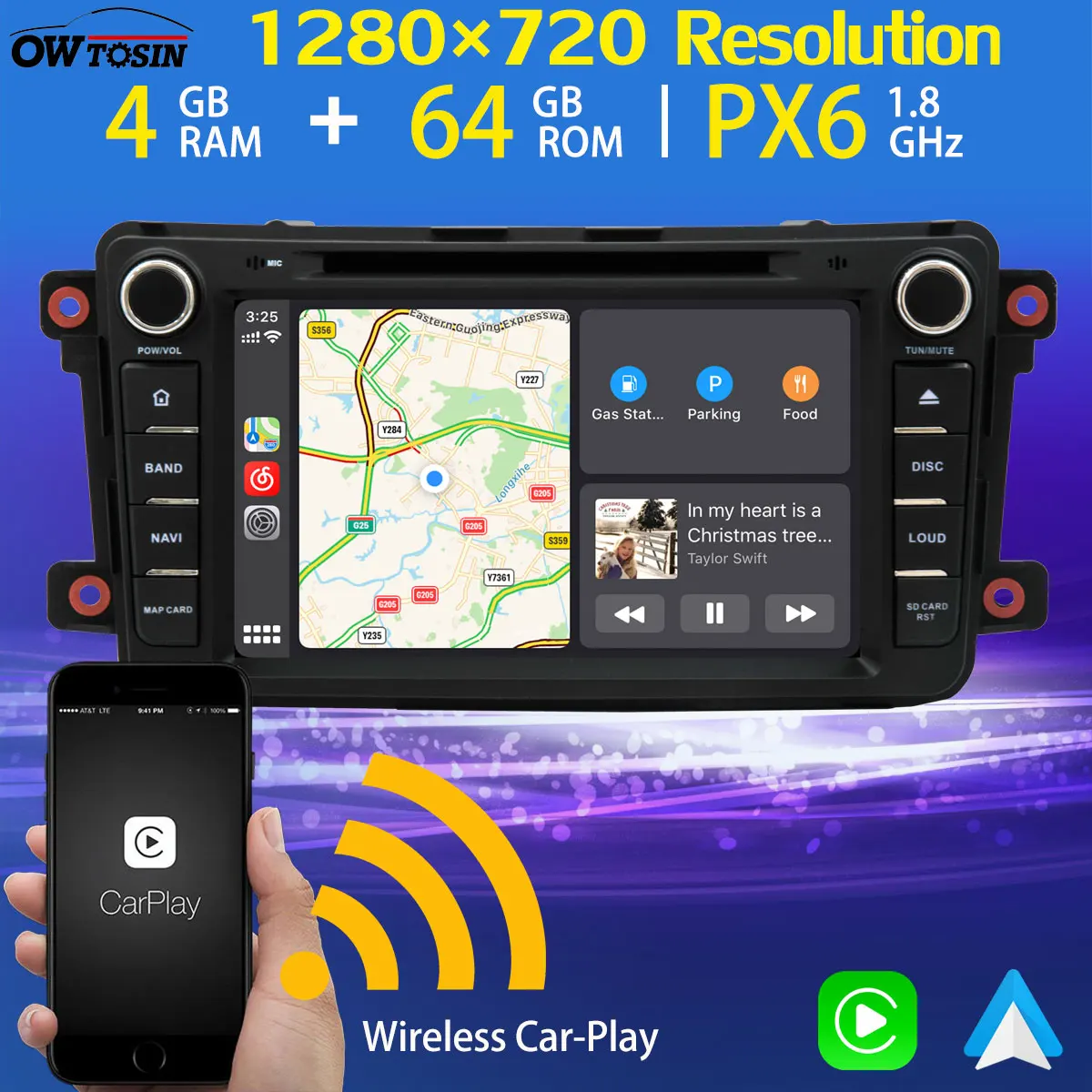 Автомобильный DVD мультимедийный плеер, 8 дюймов, 1280*720P, Android 10, PX6, 4 Гб + 64 ГБ, GPS, радио TDA7850 для Mazda CX9 2009-2015, 5 * USB, HDMI, Bluetooth 5,0