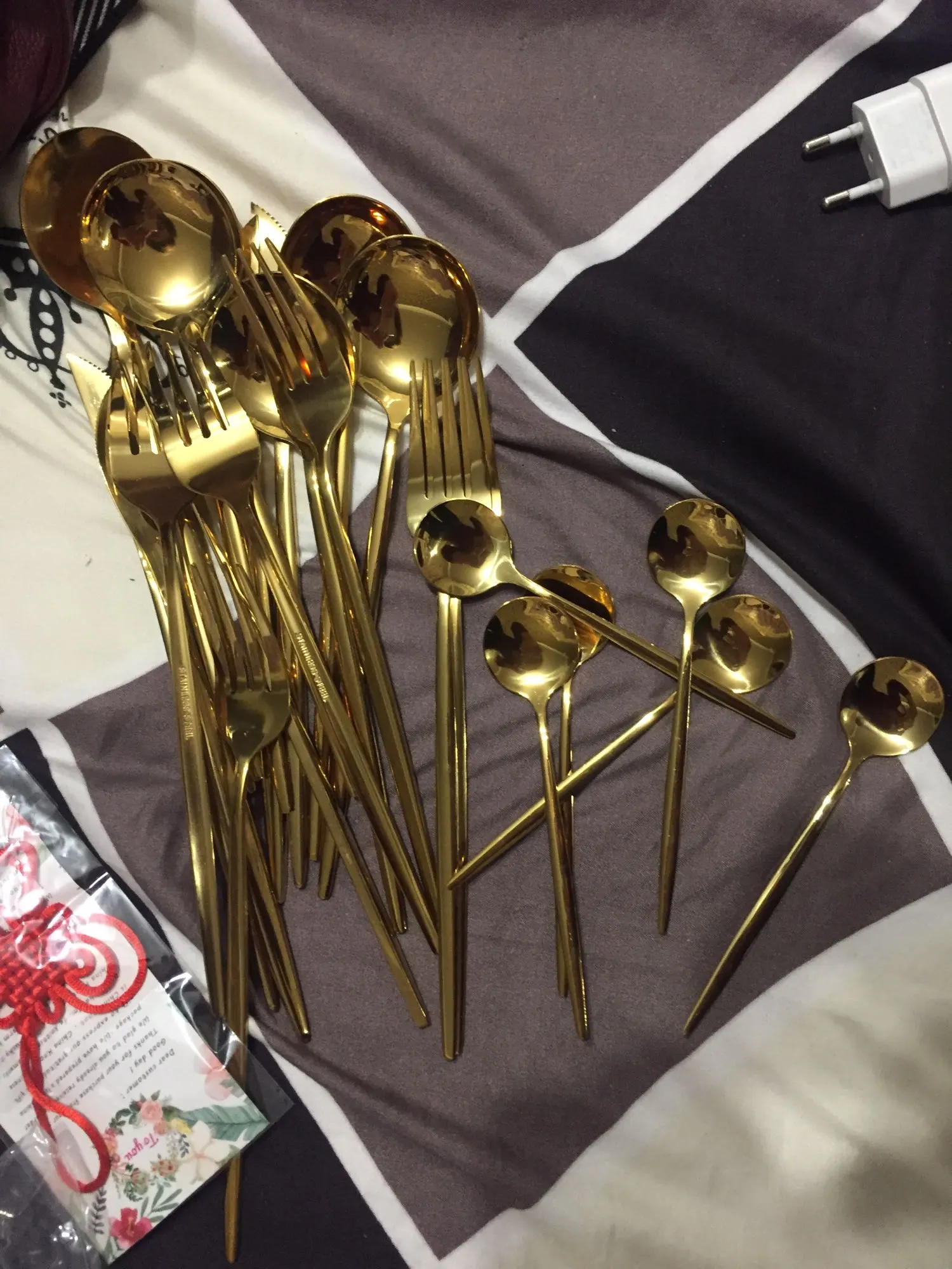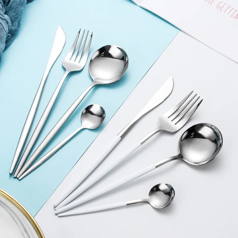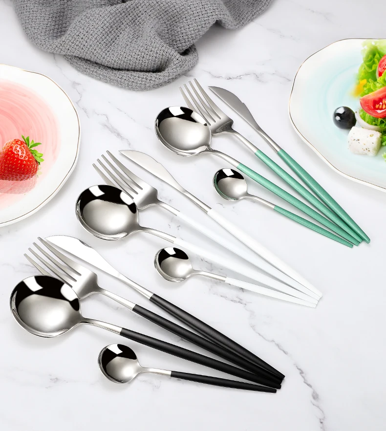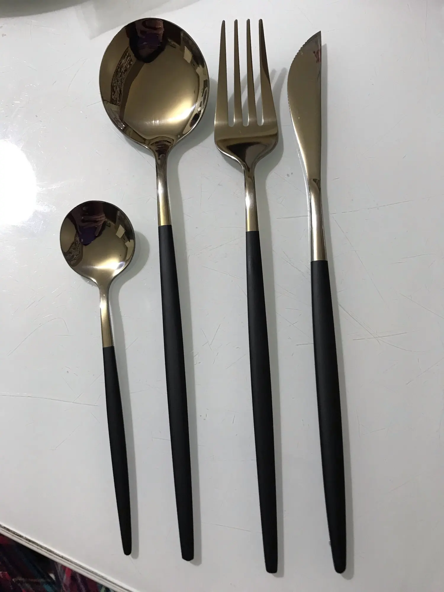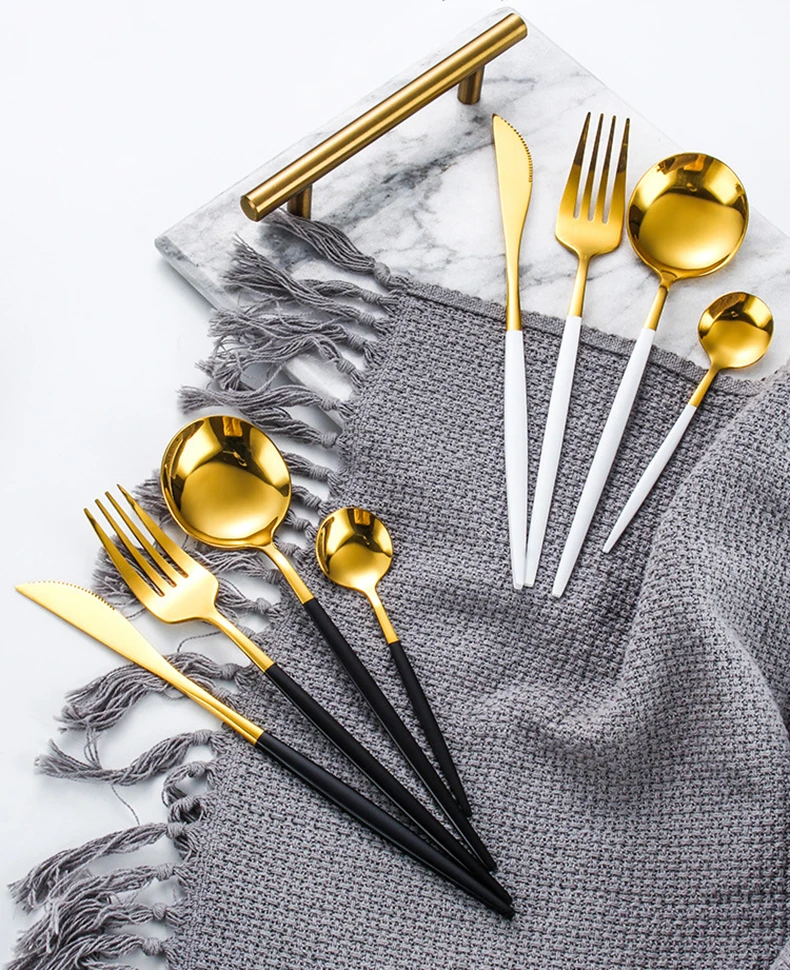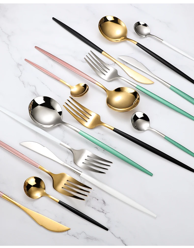 Набор из 24 предметов из высококачественной нержавеющей стали, столовые приборы в западном стиле, черное золото, серебро, белый, столовый нож, ложка, вилка, кофейная ложка, набор безопасности для посудомоечной машины
