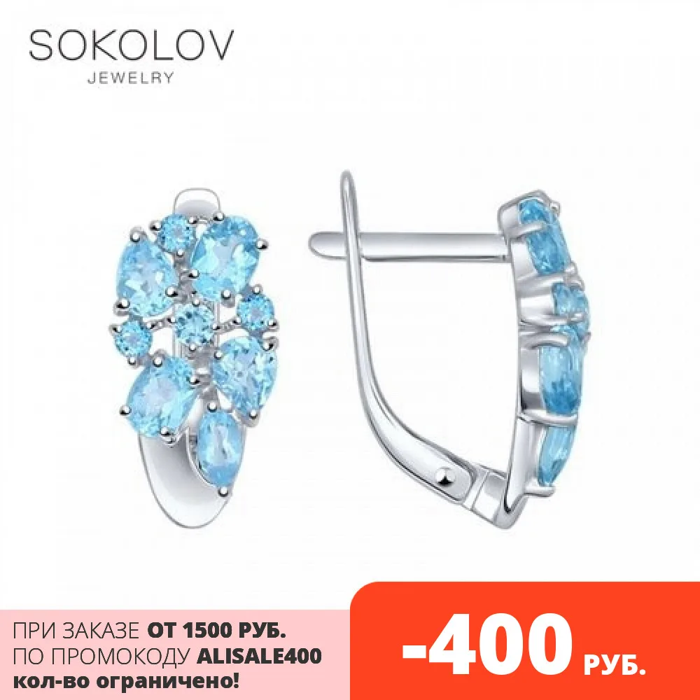 Серьги SOKOLOV из серебра с топазами, Серебро, 925, Женские, Серьги 2022 тренд, Оригинальная продукция