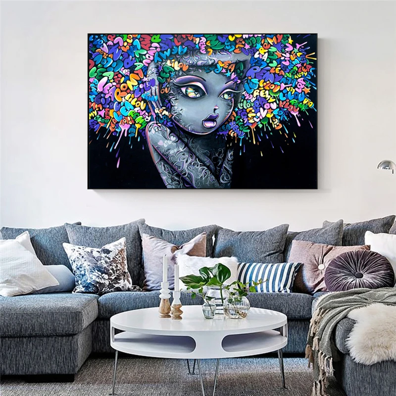 Картины для гостиной с изображением милых девушек, граффити, настен...