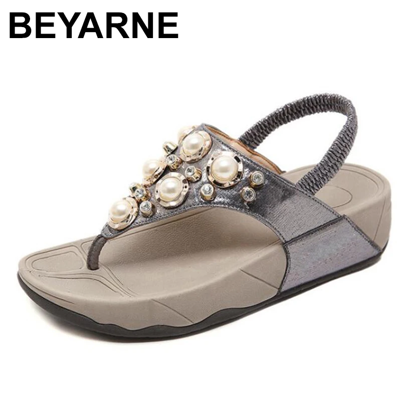 BEYARNEnewженские пляжные сандалии-стразы, шлепанцы, женские сандалии, 2020 г., летние женские сандалии на платформе с клипсой