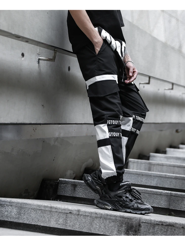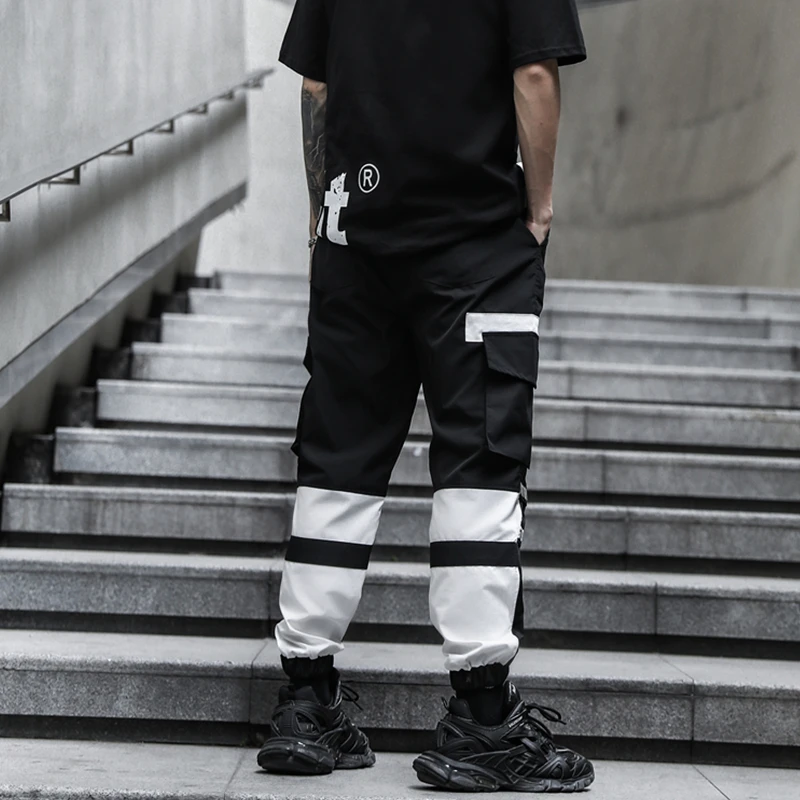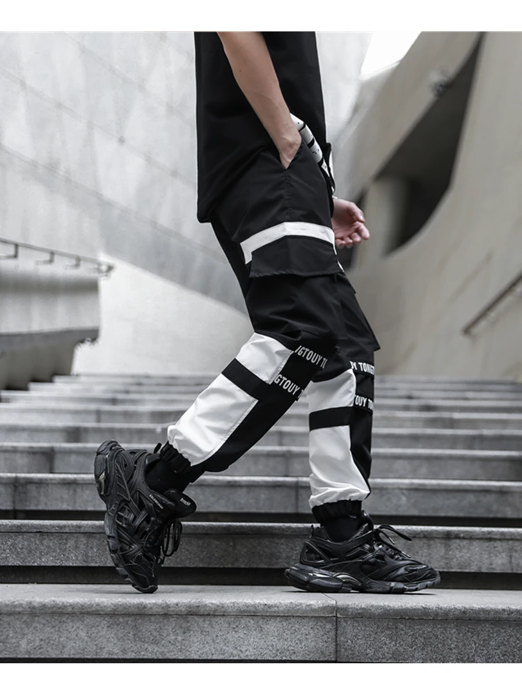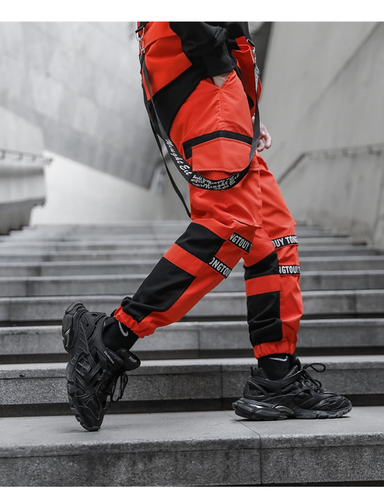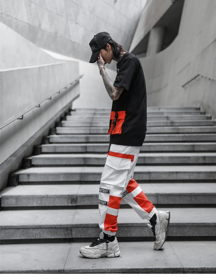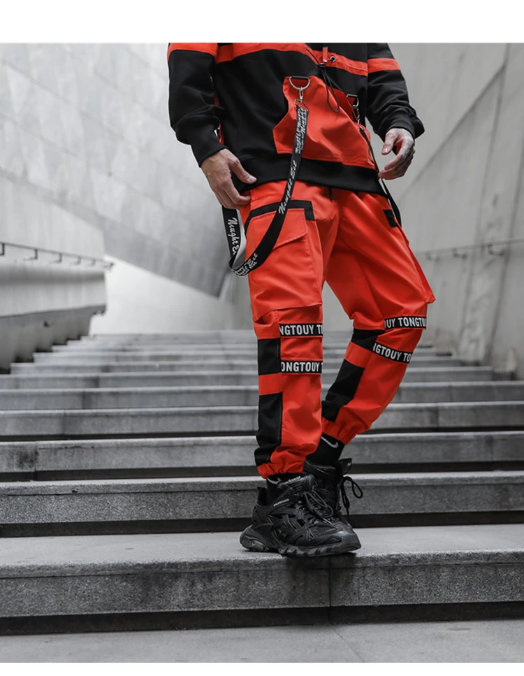 Брюки-карго мужские с эластичным поясом, модные тактические Спортивные штаны с лентами, брендовые Джоггеры в стиле хип-хоп, оранжевые, черные и белые