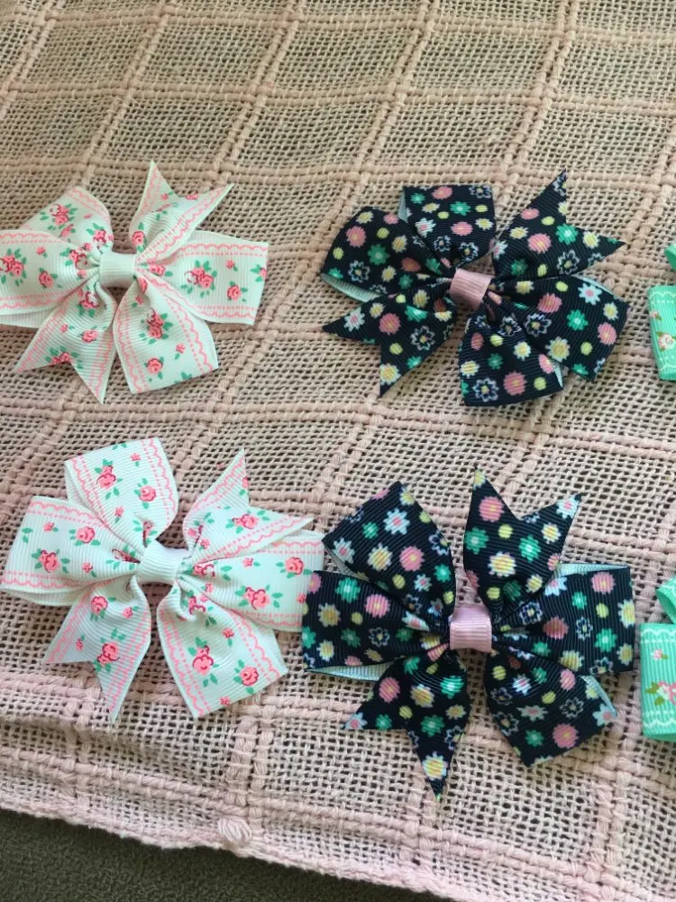 20 шт.лот, банты для волос с цветочным принтом и зажимом для маленьких девочек, зажим для волос из атласной ленты, Аксессуары для волос 039