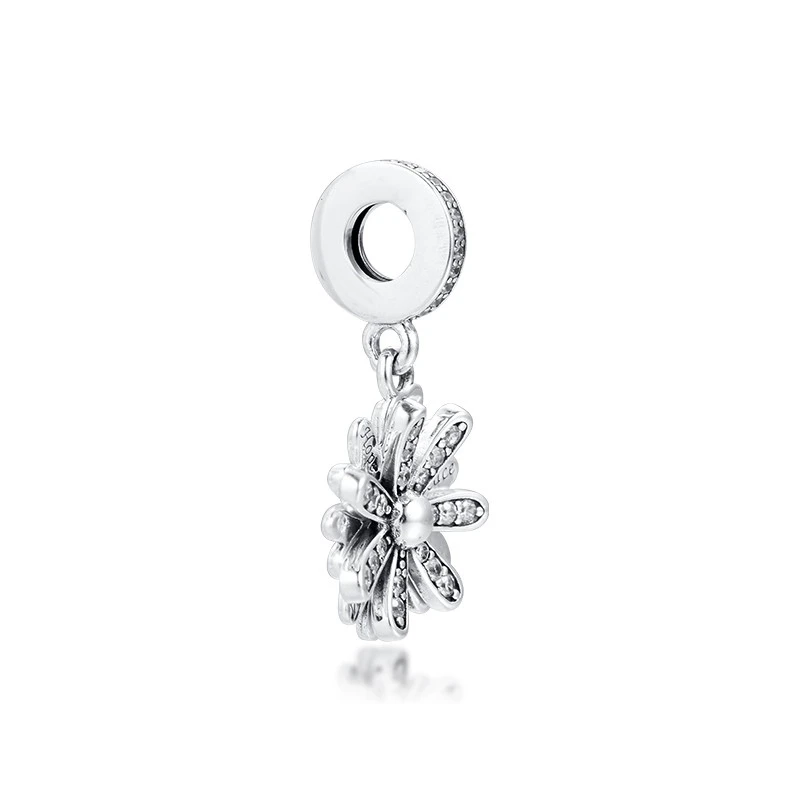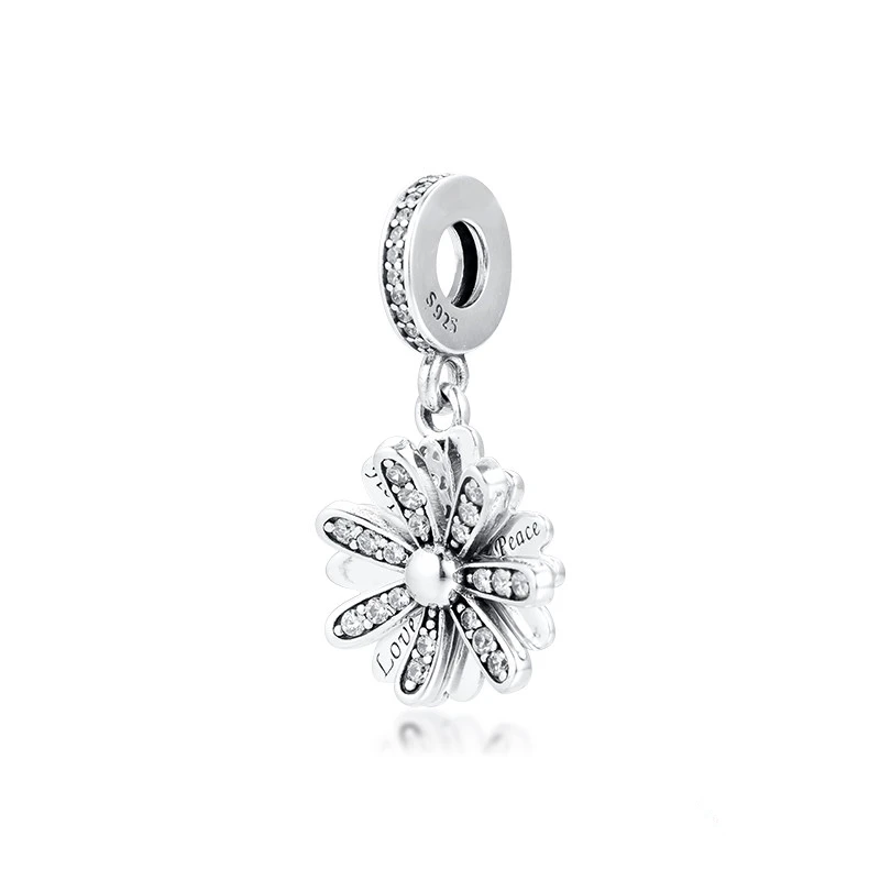 Бусина из серебра 925 пробы, со сверкающими цветами, для изготовления ювелирных изделий