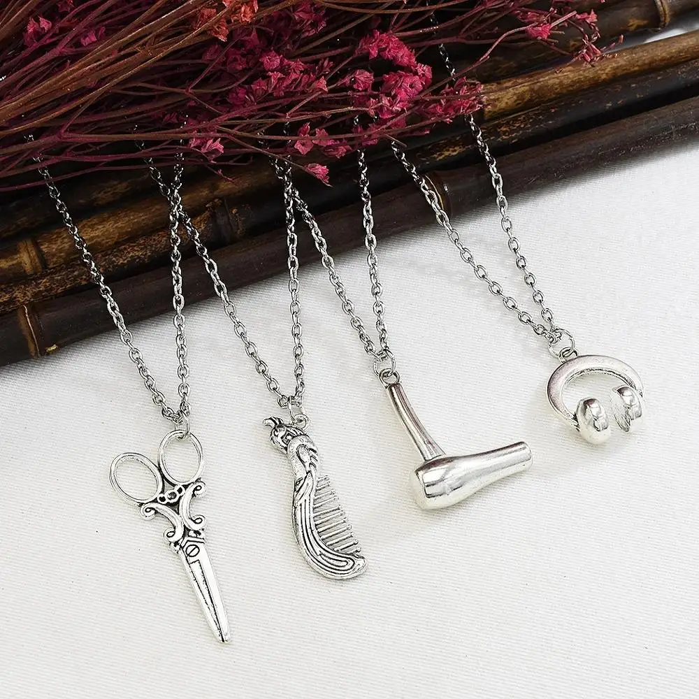 Винтаж Панк ювелирные изделия ожерелье мужские инструменты фенножницыРасческа Подвески ожерелье Парикмахерская подарок ожерелье