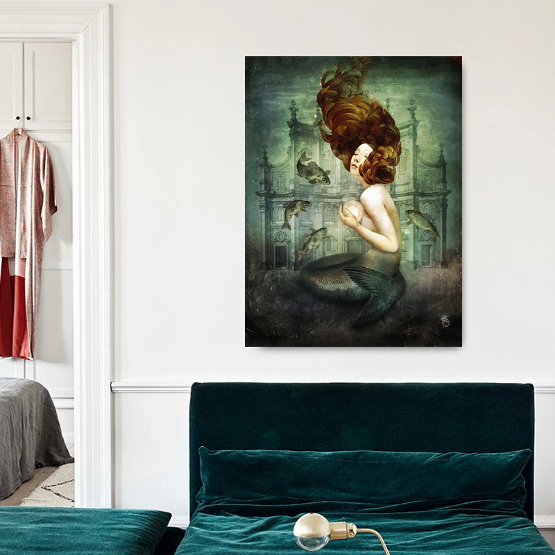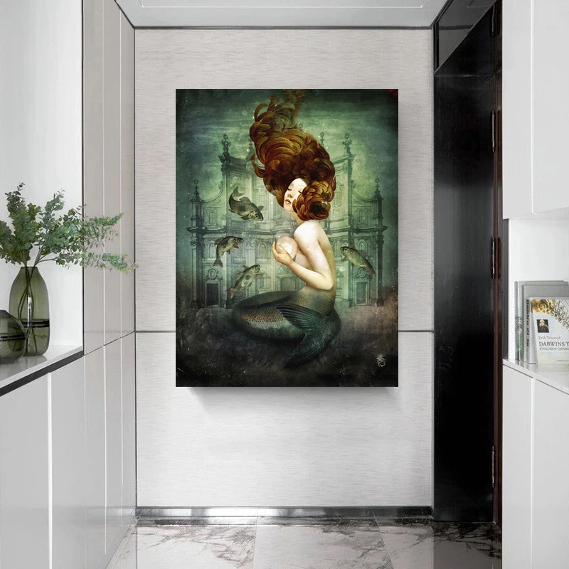 WANGART постер с принтом русалки, жемчужная картина маслом, холст, настенные картины для гостиной, домашний декор
