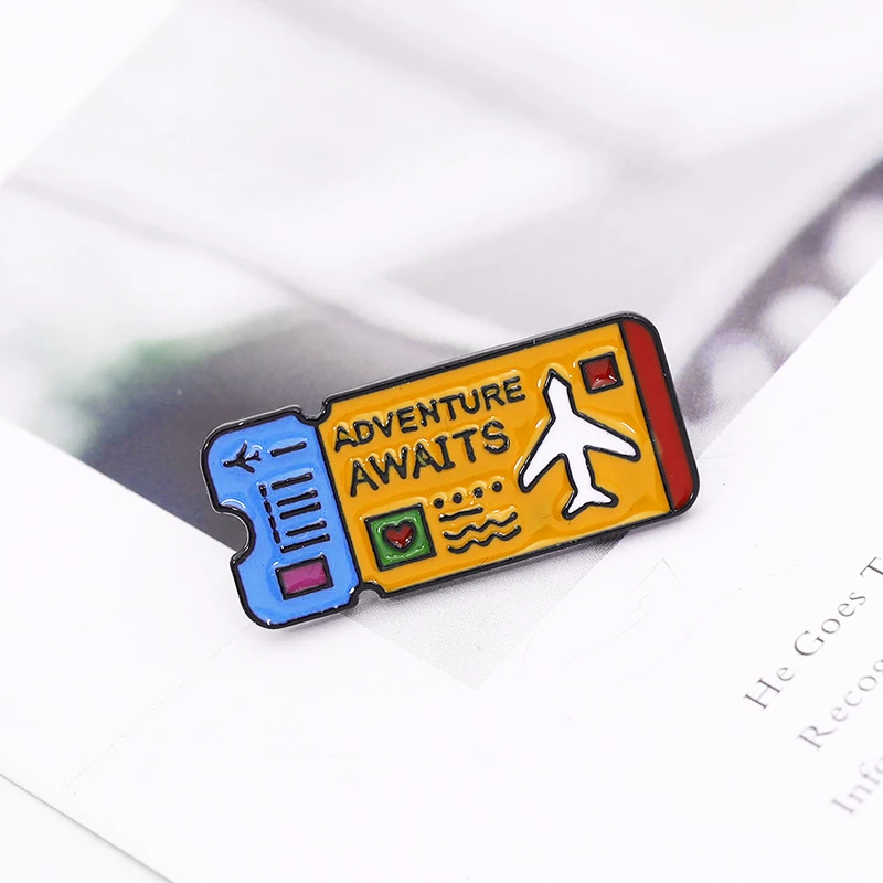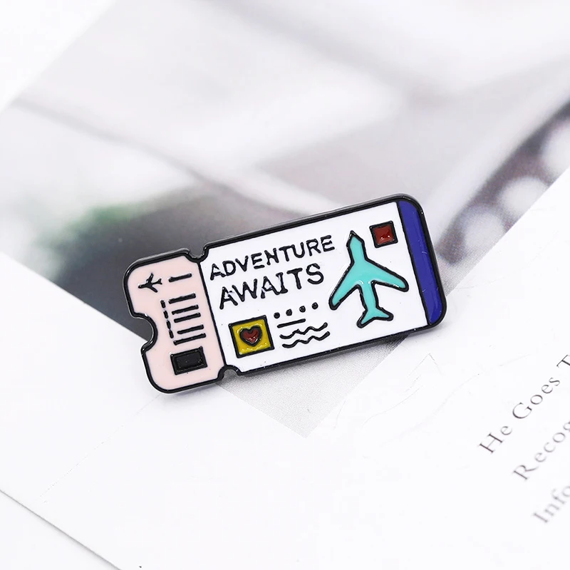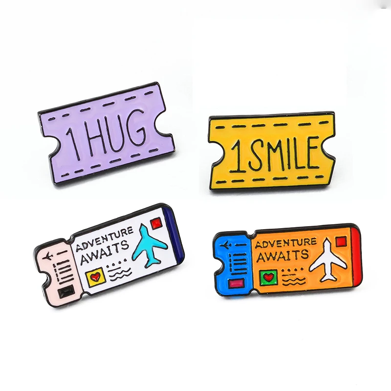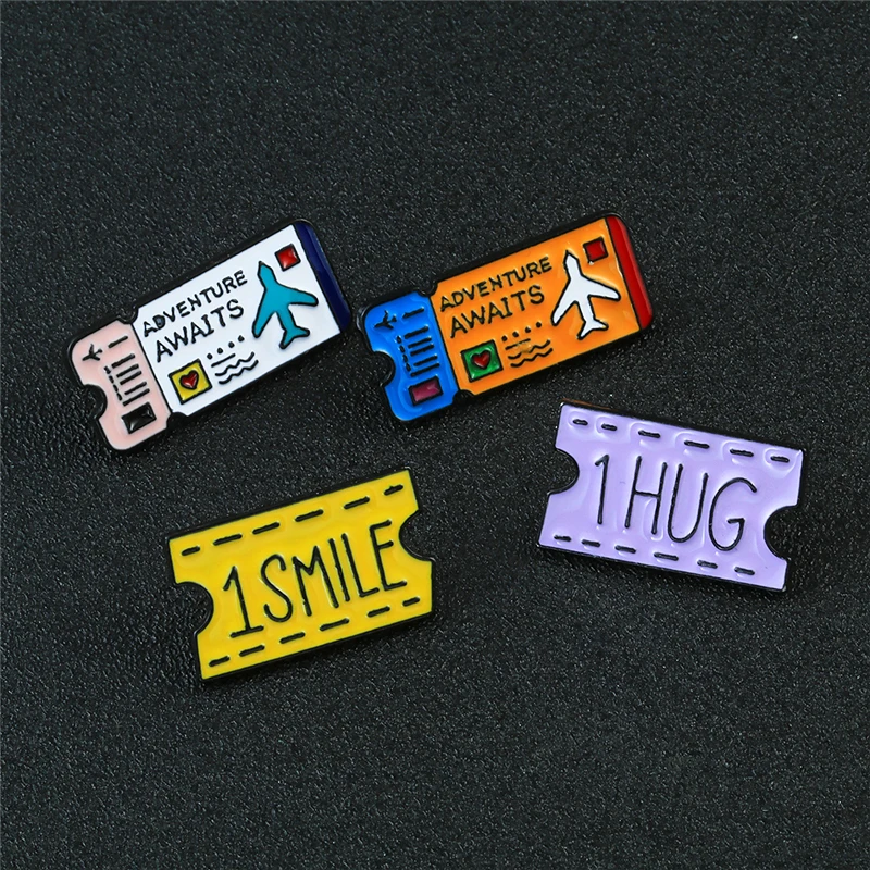 Значок на лацкан с эмалированным купоном, с изображением мультяшного воздушного билета, приключения ждет 1 обнимания 1 улыбки, любовь мешочек для брошек, милый ювелирный подарок для друзей