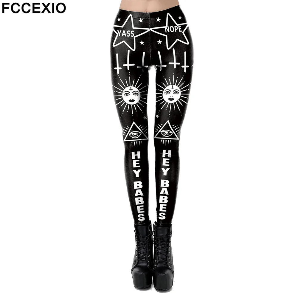 Женские облегающие леггинсы FCCEXIO в готическом стиле, уличные джеггинсы с высокой талией для тренировок и фитнеса
