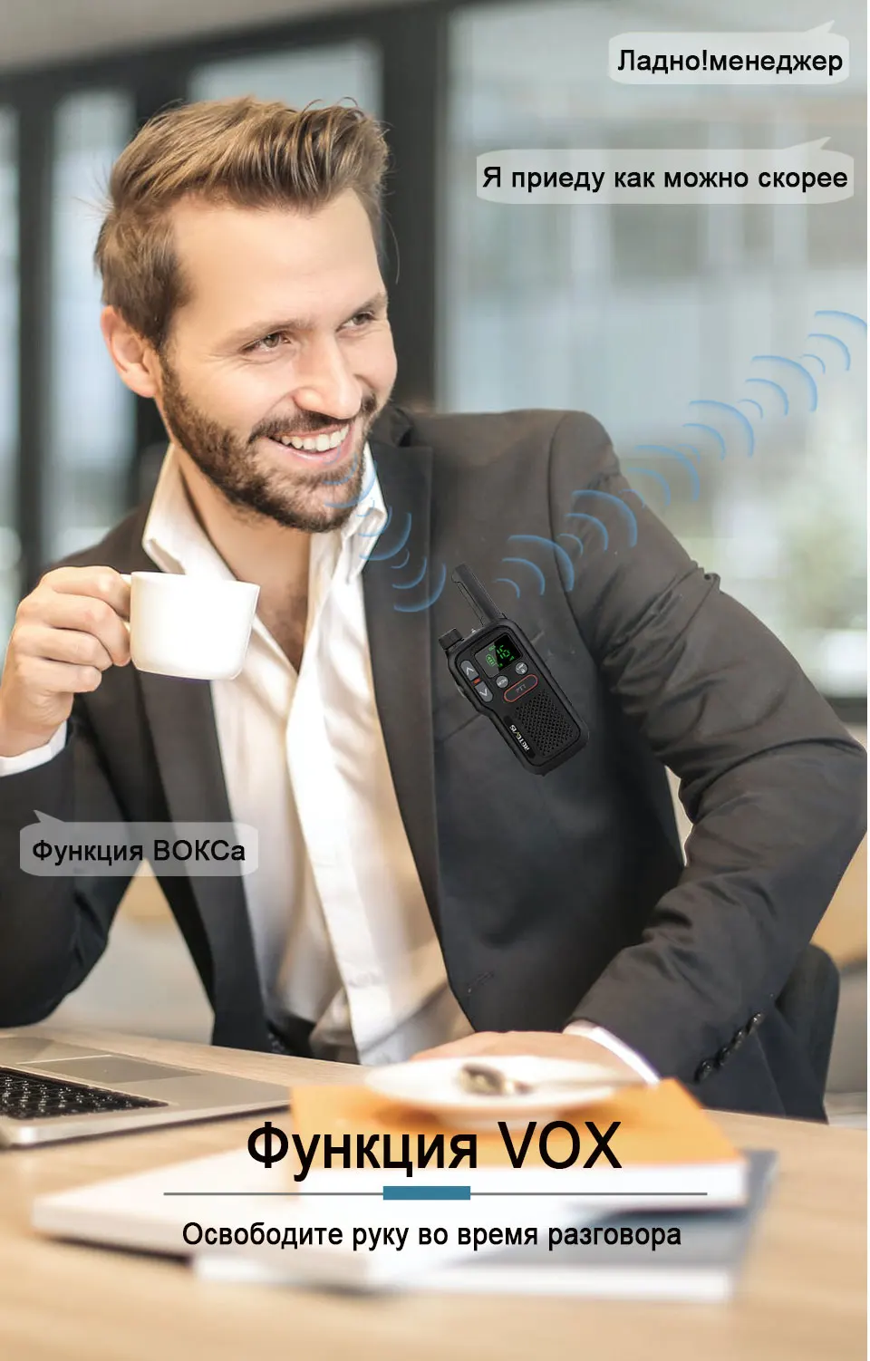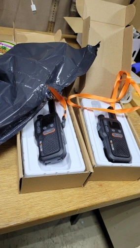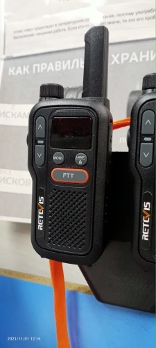 доставка просто супер быстрая. Есть две кнопки, индикатор передачи и приема сигнала, также индикатор зарядки. удобный. пробуем на работе. слышно четко. но позже тоже отпишусь. брали для склада.